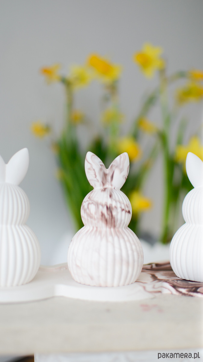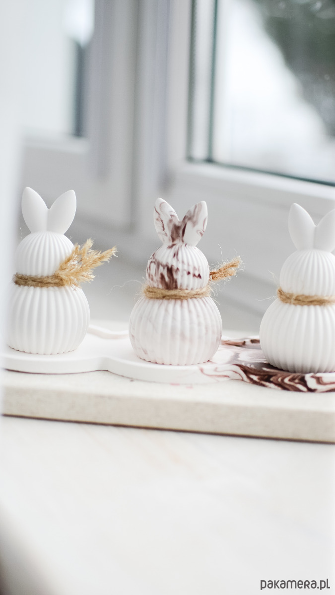 Podstawka i zajączki z gipsu polimerowego, materiału przyjaznego dla środowiska. Każde jest w 100% wykonywana ręcznie, dlatego jest unikatowe, nigdy nie powstaną dwie identyczne sztuki. Drobne różnice w strukturze i wykończeniu są naturalną cechą rękodzieła i podkreślają jego wyjątkowy charakter.