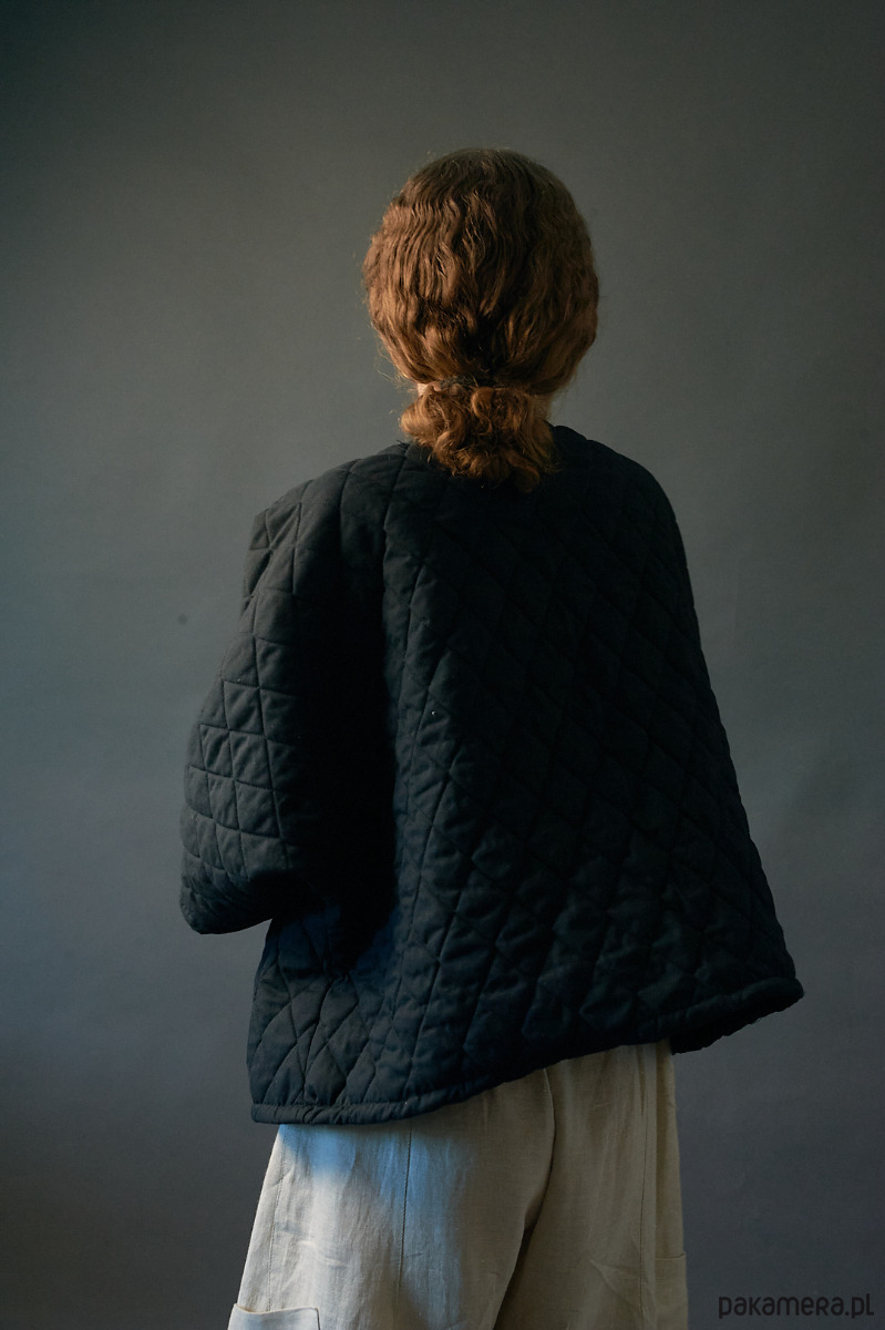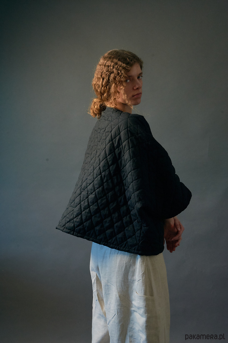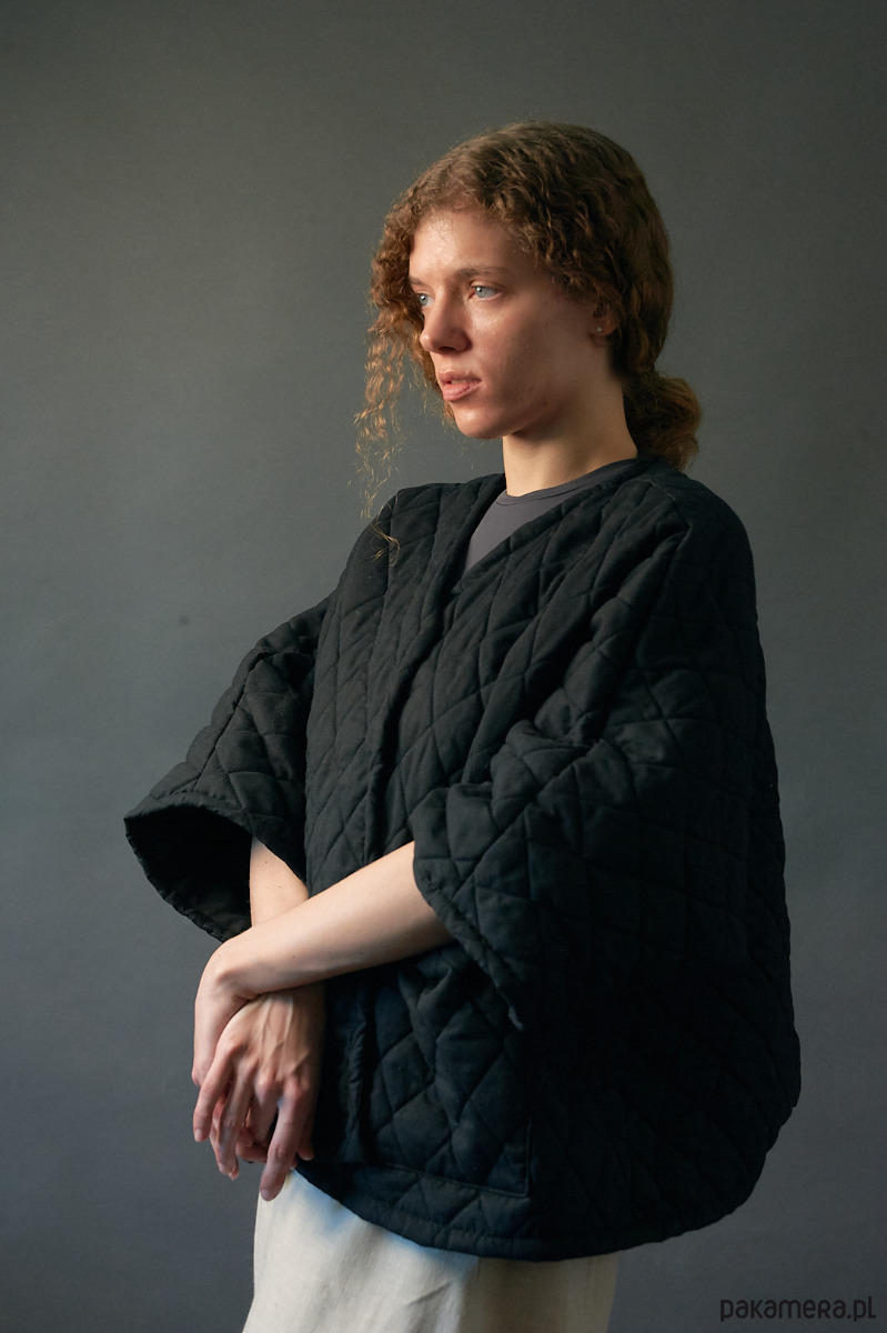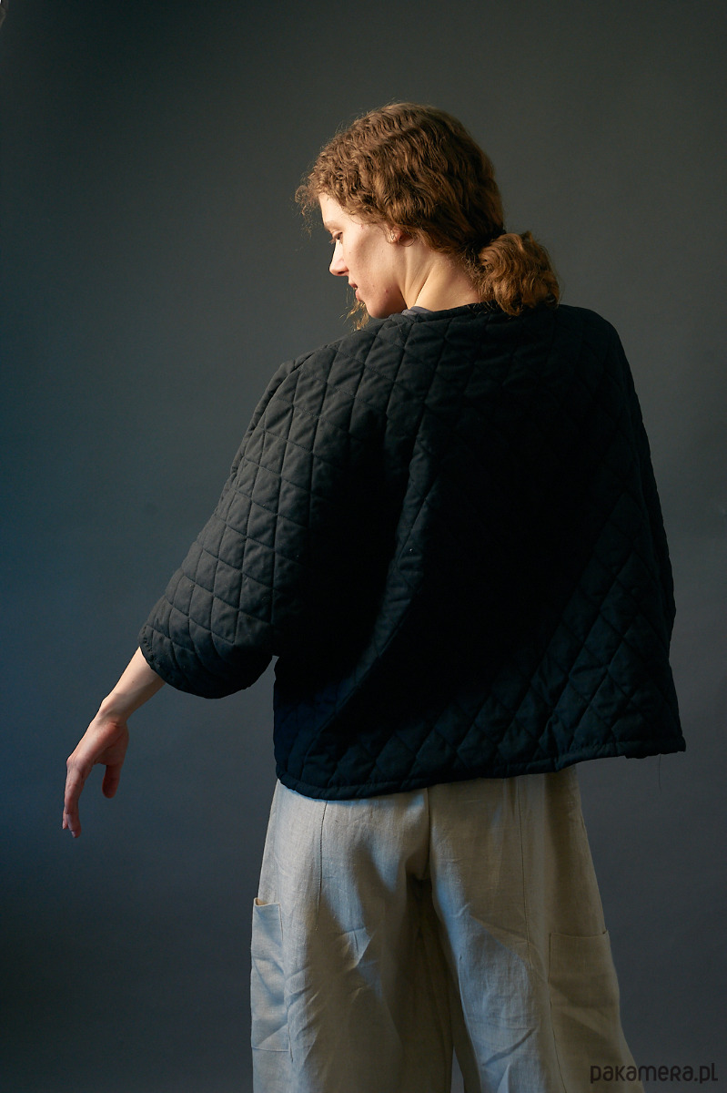 Żakiet kimonowy krótki pikowany czarny