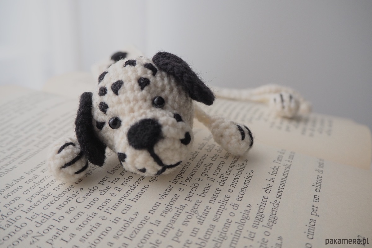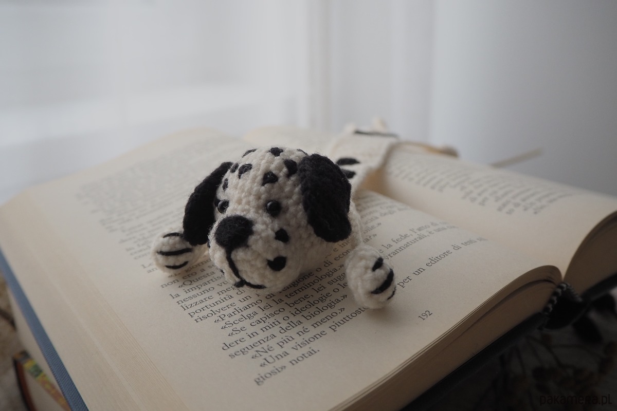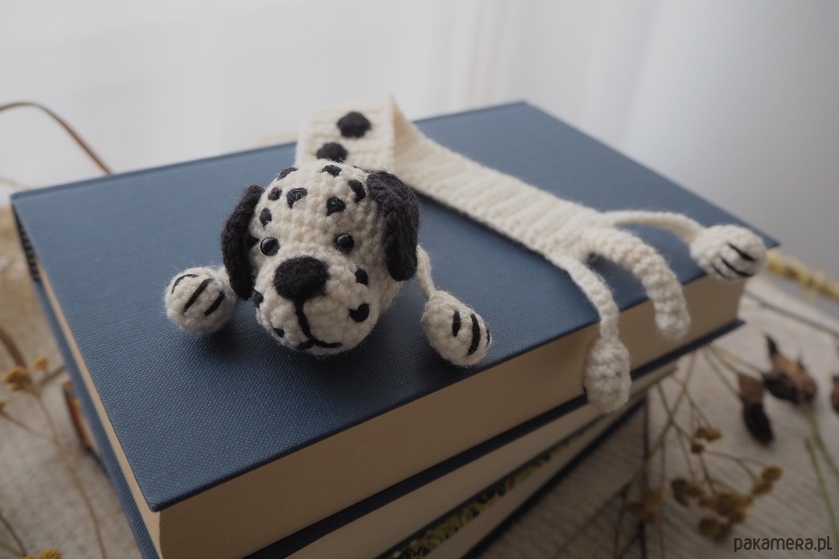 Zakładka do książki z sympatycznym pieskiem wykonana z włóczki na szydełku.