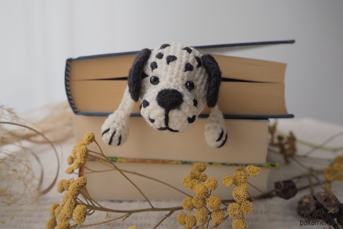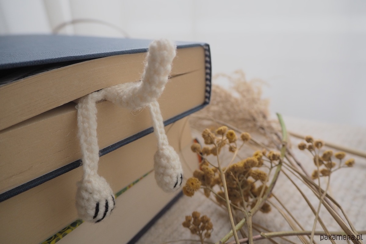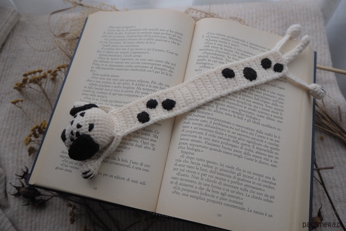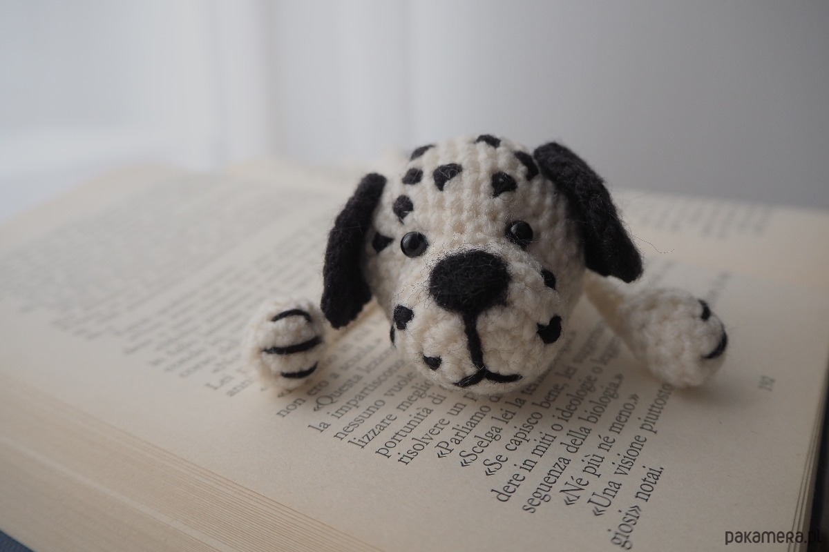 Zakładka do książki z sympatycznym pieskiem wykonana z włóczki na szydełku.