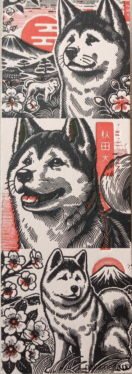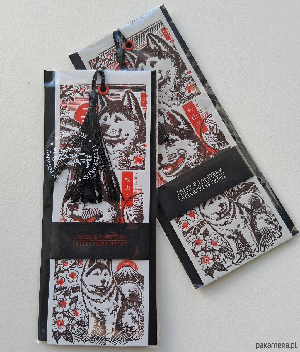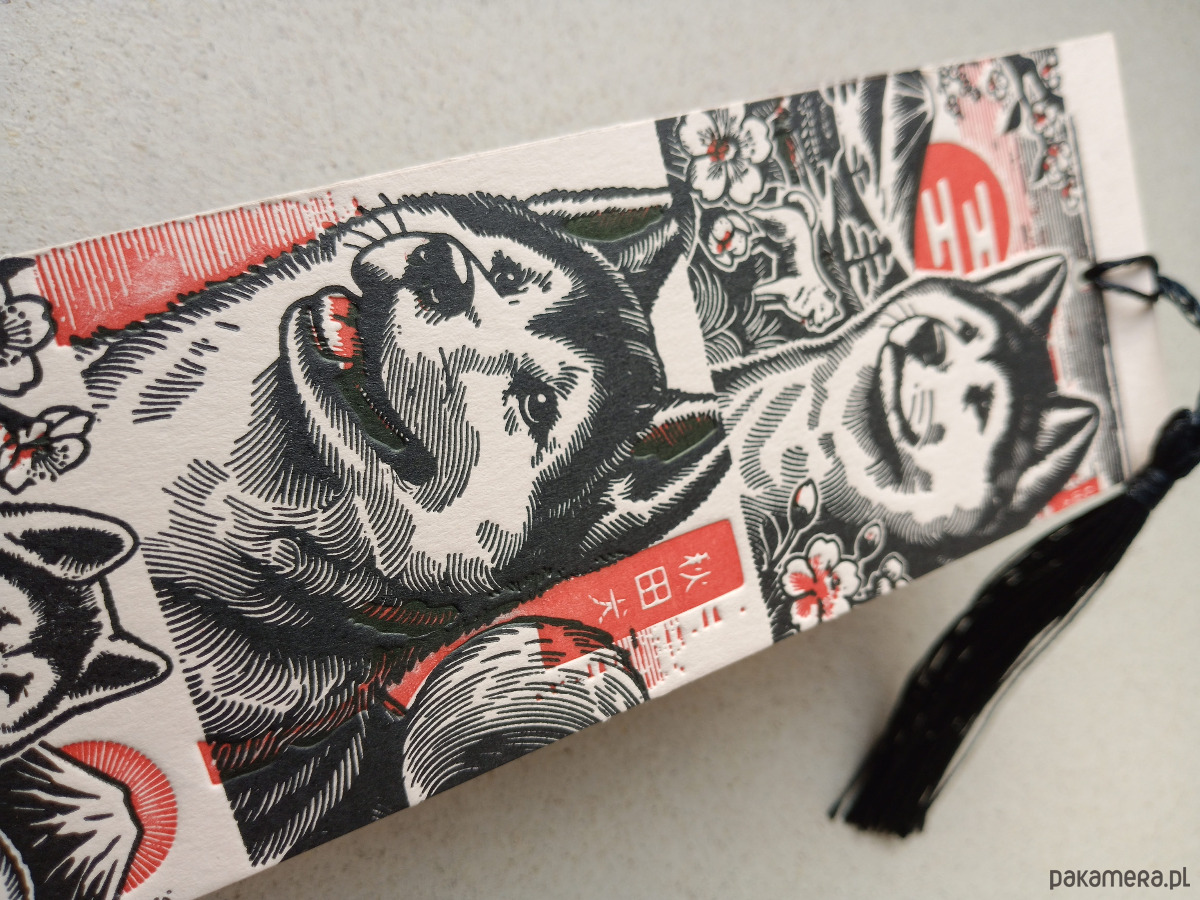 Zakładka pies Akita letterpress tłoczenie z chwostem.