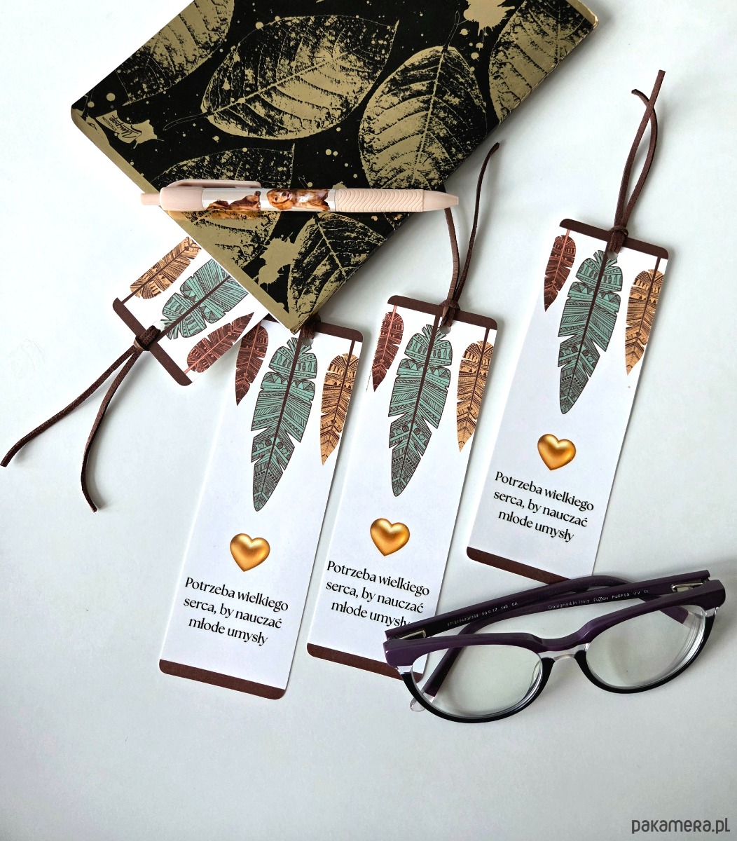 Z delikatnym motywem piór oraz złotym sercem – symbolem pasji i mądrości – stanowi piękny, symboliczny upominek dla nauczyciela.