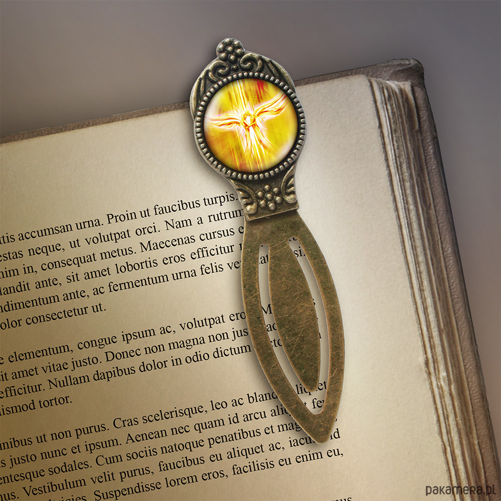 Zakładka wykonana jest z metalu w kolorze antycznego brązu.