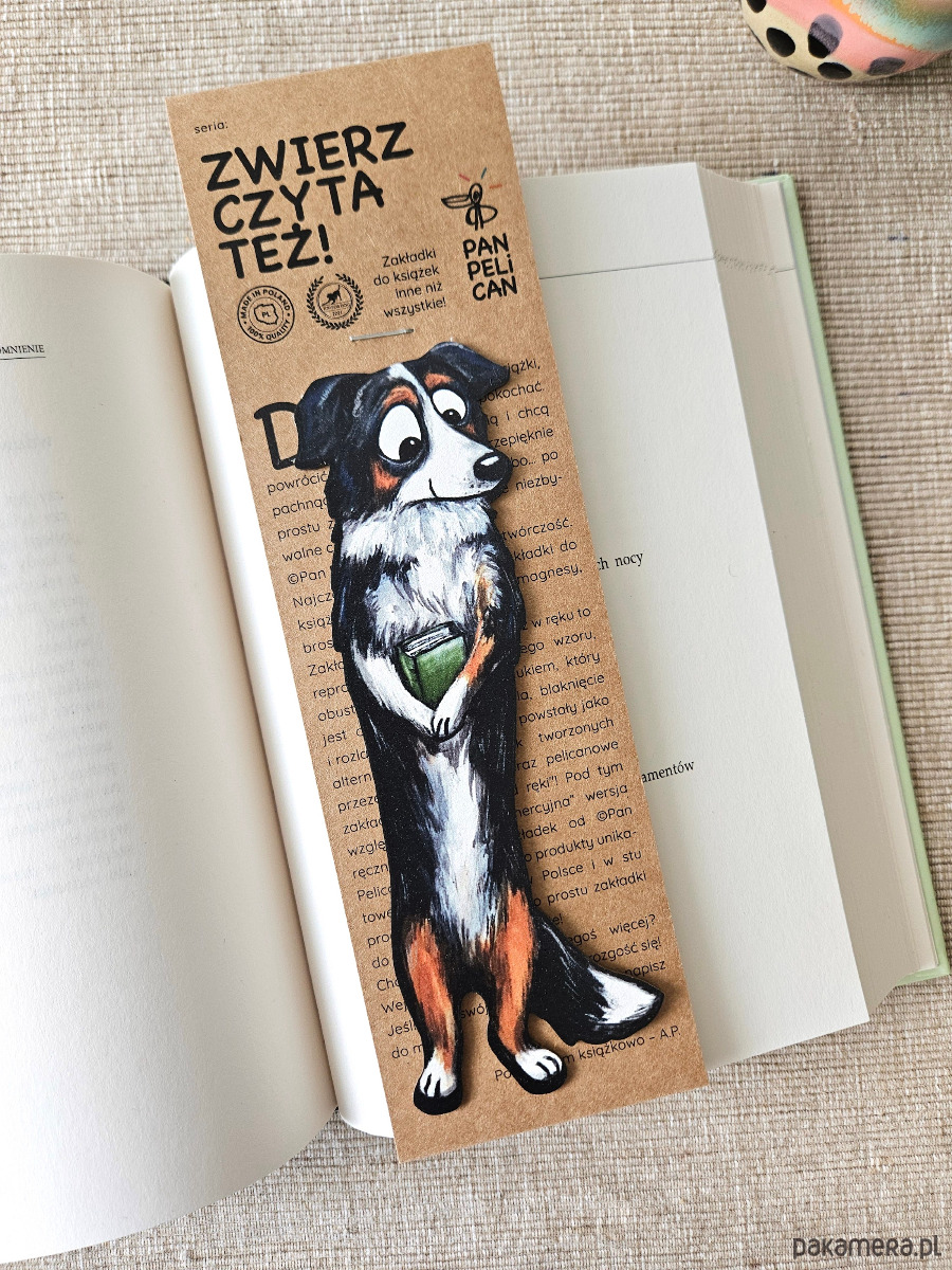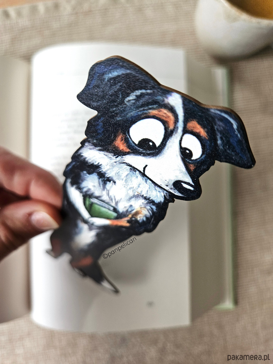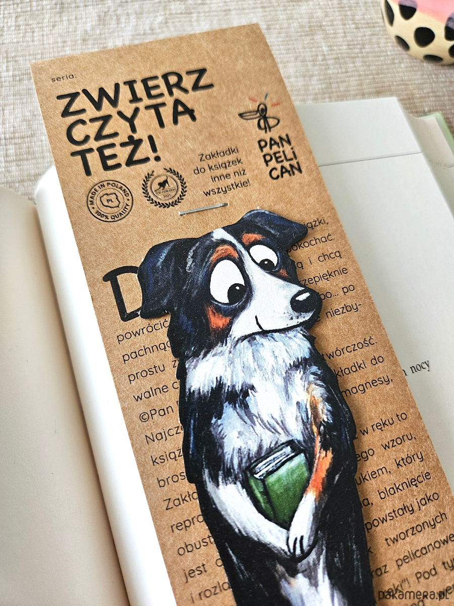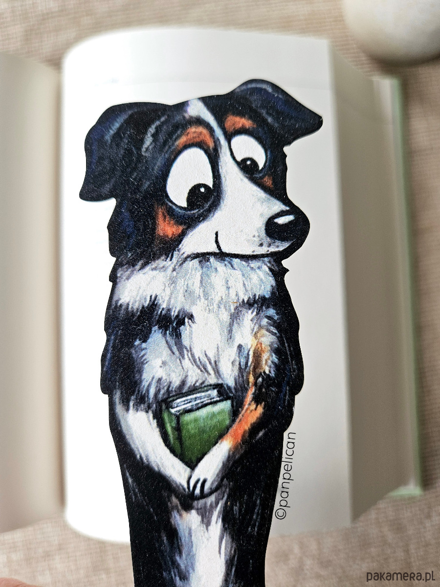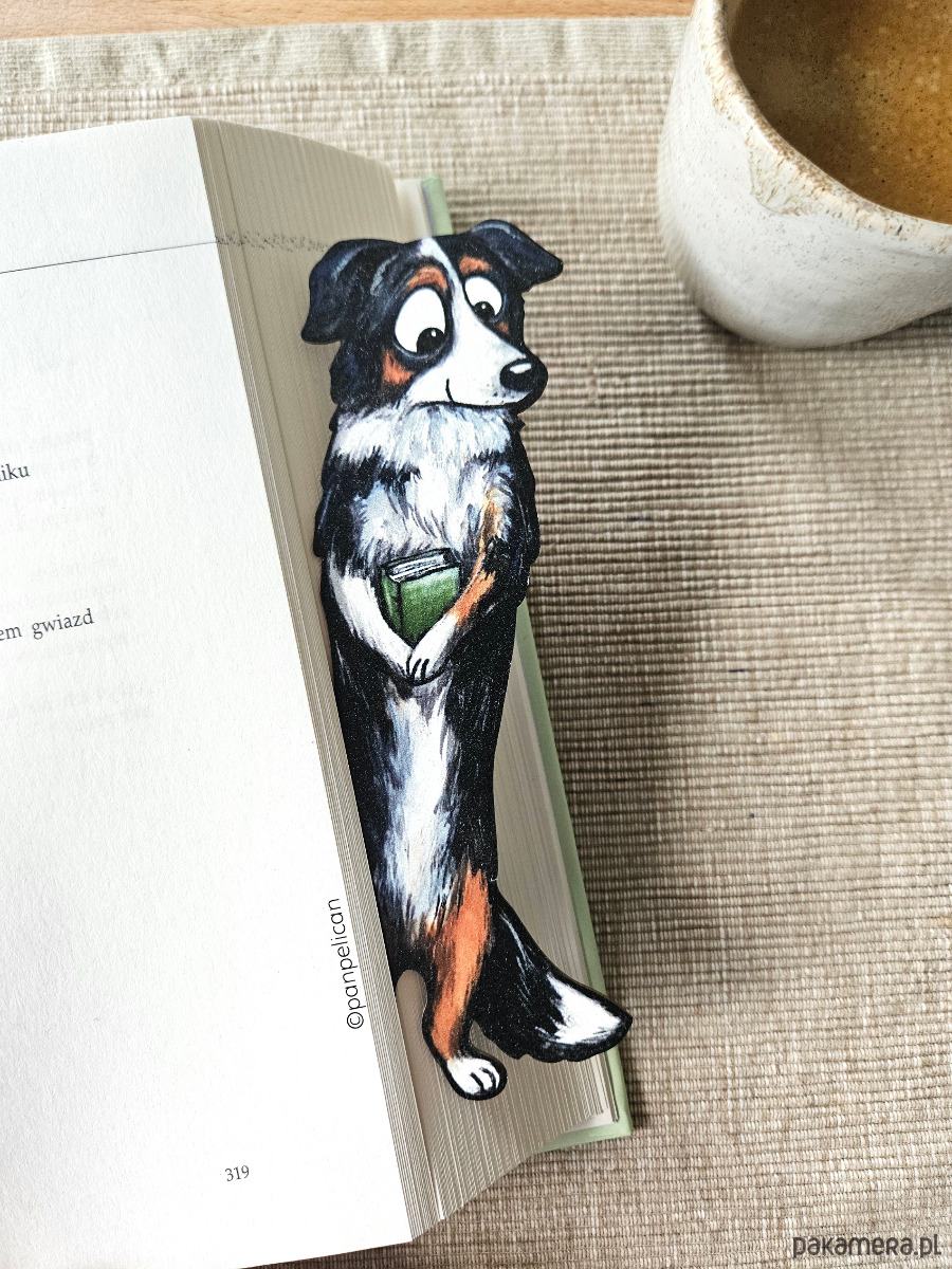 Autorska dwustronna zakładka do książki „Border Collie”*. Druk na ekotekturze premium, reprodukcja malowanego ręcznie wzoru.