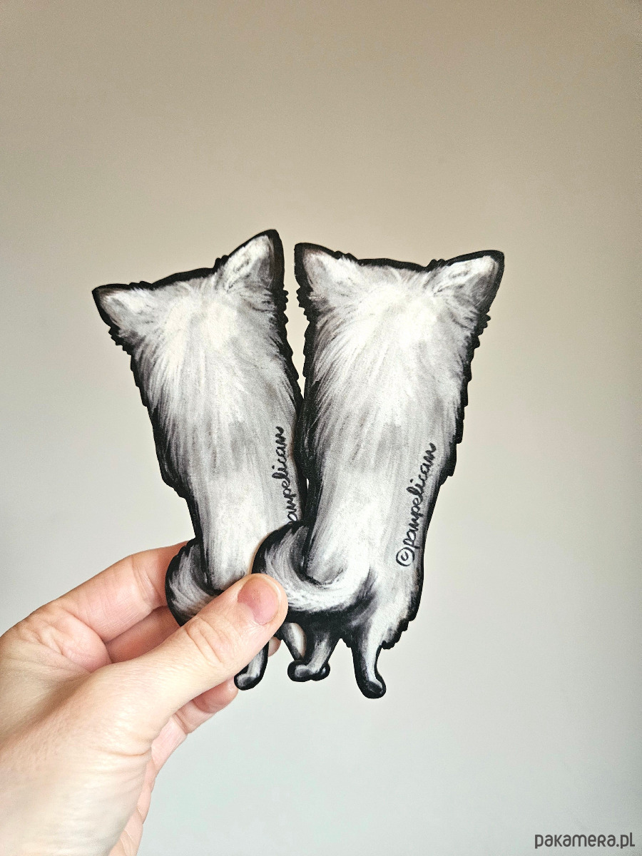 Autorska dwustronna zakładka do książki „Chihuahua Tetti Lu”*. Druk na ekotekturze premium, reprodukcja malowanego ręcznie wzoru.