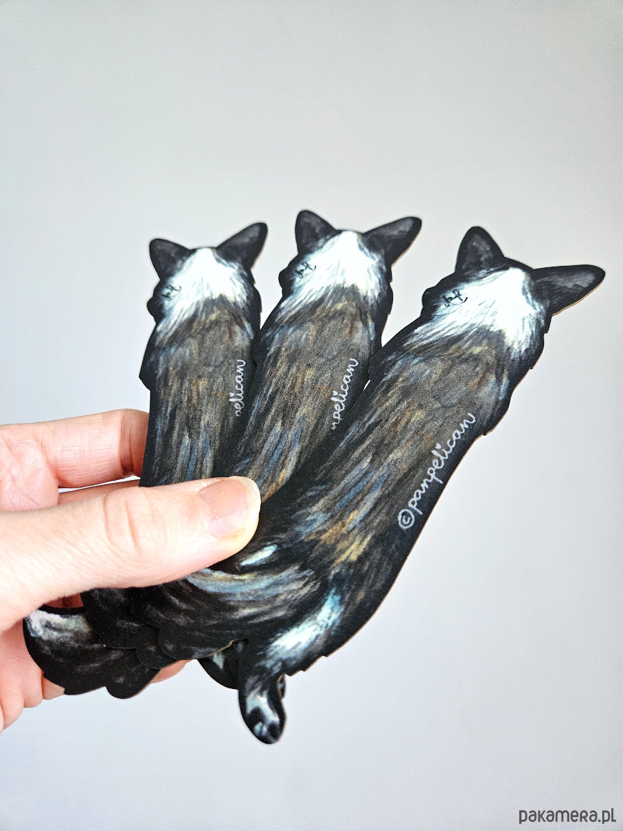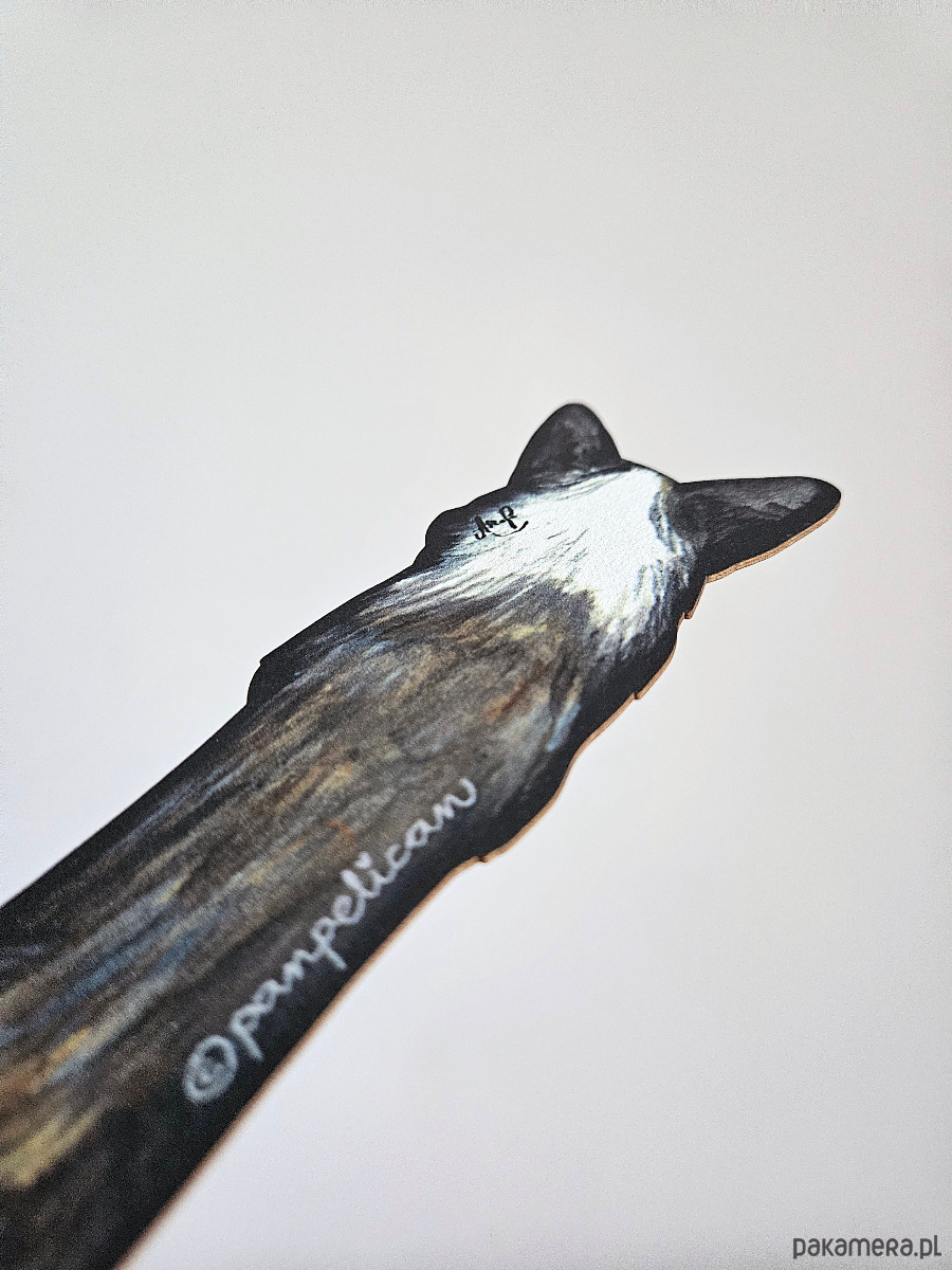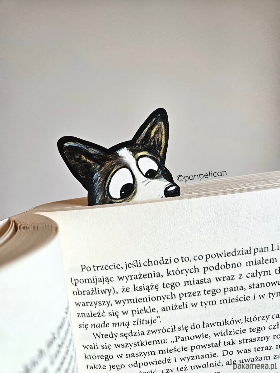 Autorska dwustronna zakładka do książki „Corgi Cardigan”*. Druk na ekotekturze premium, reprodukcja malowanego ręcznie wzoru.