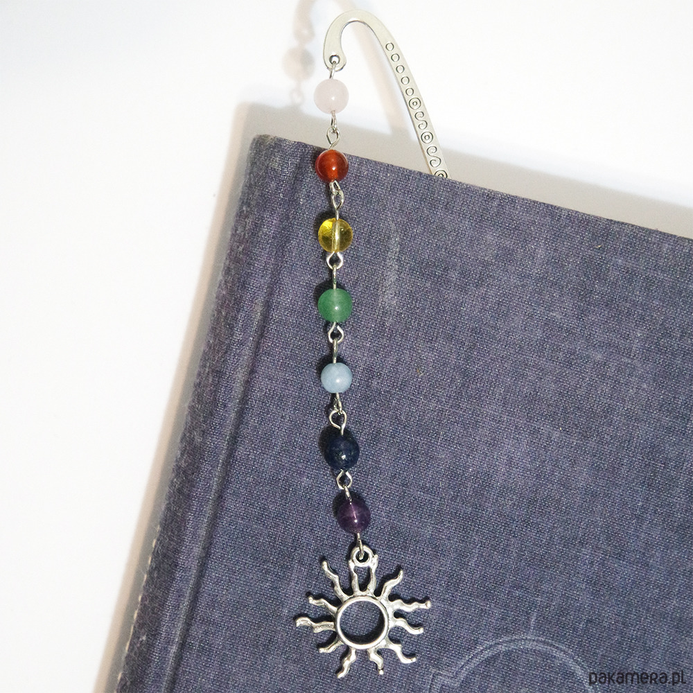 Niezwykła i praktyczna zakładka do książki z kompozycją z koralików w kolorach czakr.