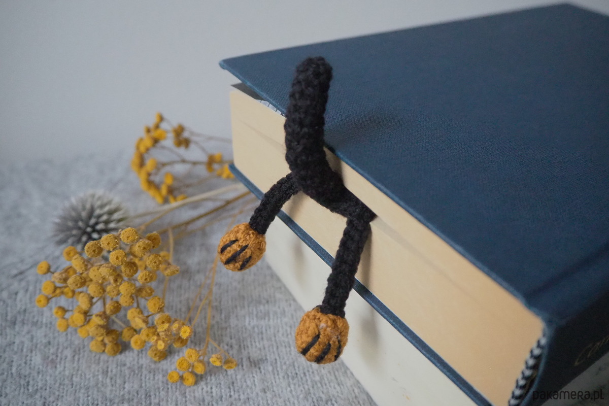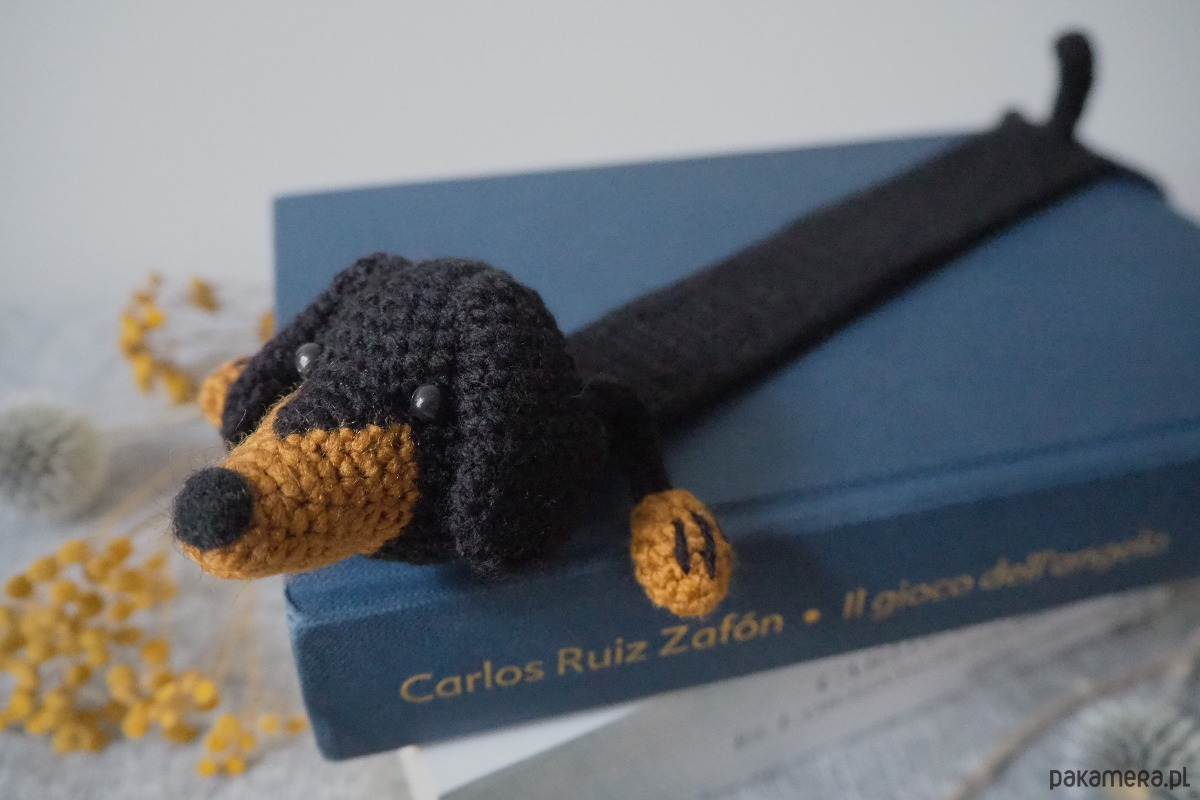 Zakładka do książki z sympatycznym pieskiem wykonana z włóczki na szydełku.