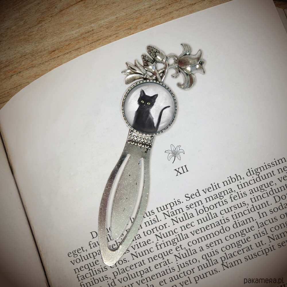 Grafika ukryta w pięknie zdobionej motywem lilii, romantycznej zakładce do książki pod osłoną przeźroczystego półokrągłego szkiełka.