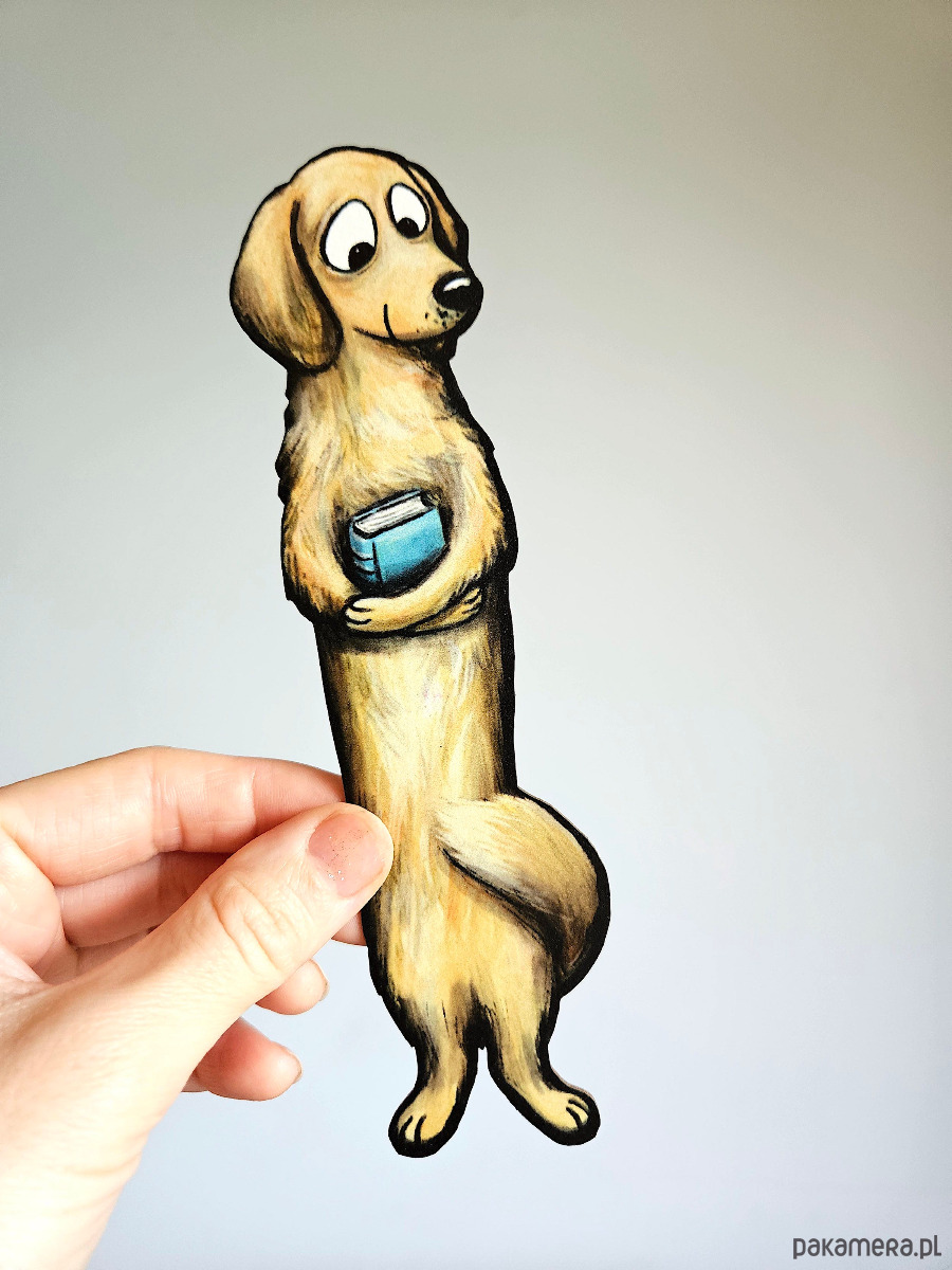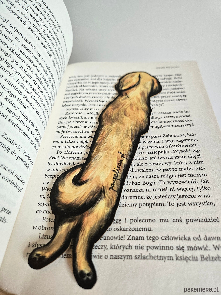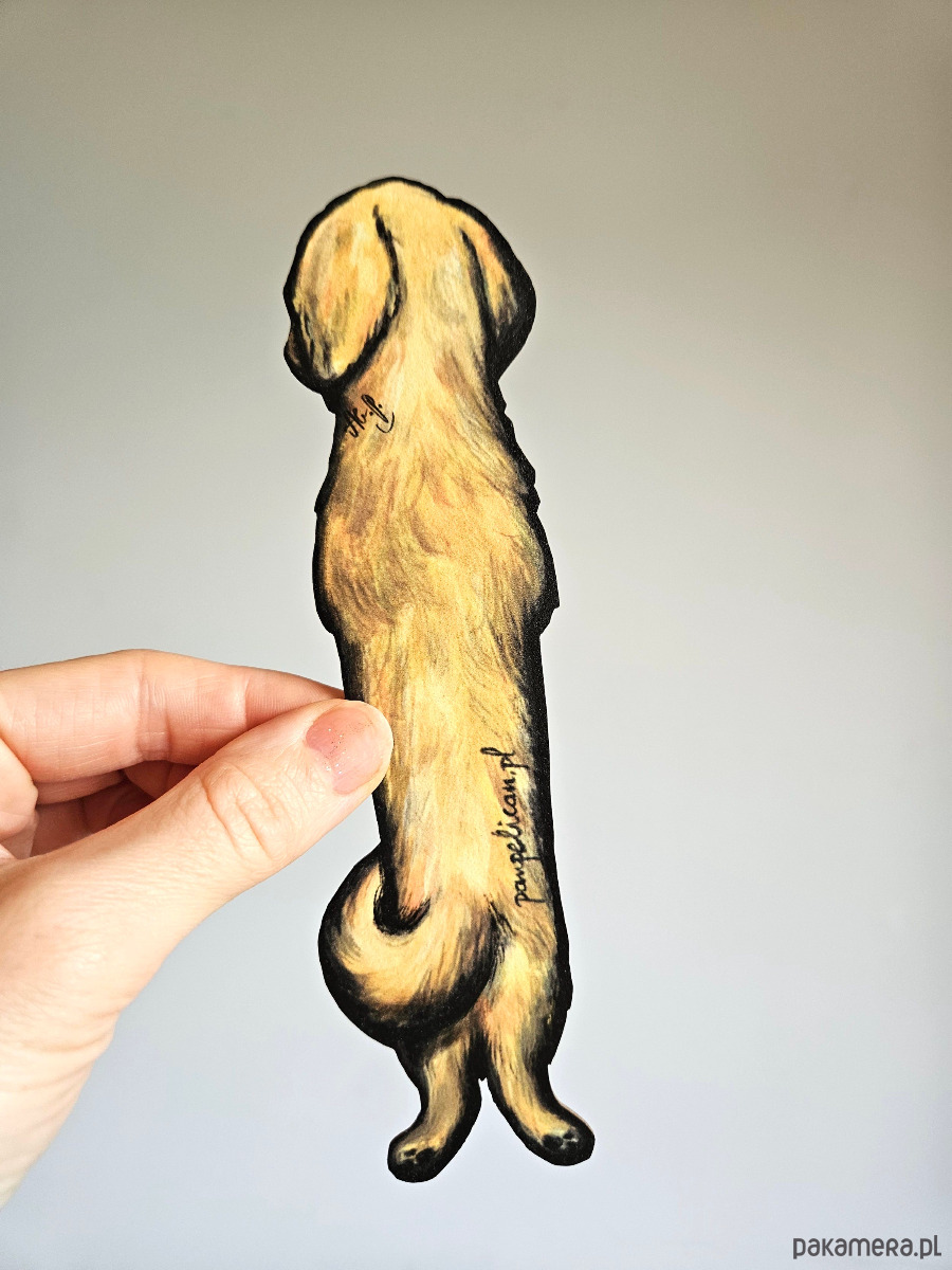 Autorska dwustronna zakładka do książki „Golden Bazia”*. Druk na ekotekturze premium, reprodukcja malowanego ręcznie wzoru.