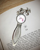 Grafika ukryta w pięknie zdobionej motywem lilii, romantycznej zakładce do książki pod osłoną przeźroczystego półokrągłego szkiełka.