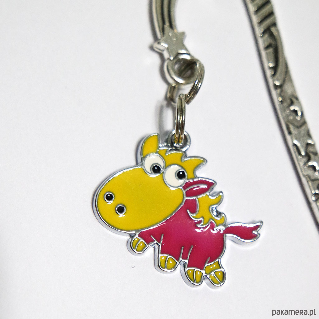 Niezwykła i praktyczna zakładka do książki z emaliowaną zawieszką w kształcie konika.