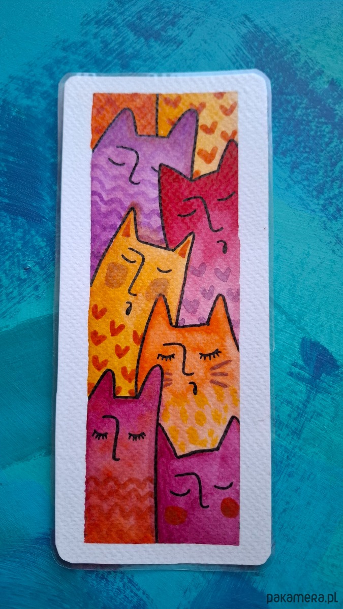 Zakładka do książek malowana akwarelami na specjalnym papierze o gramaturze 300g/m2. Każda zakładka jest wyjątkowa i niepowtarzalna, dwustronna , niektóre zdobione delikatnie złotymi elementami.