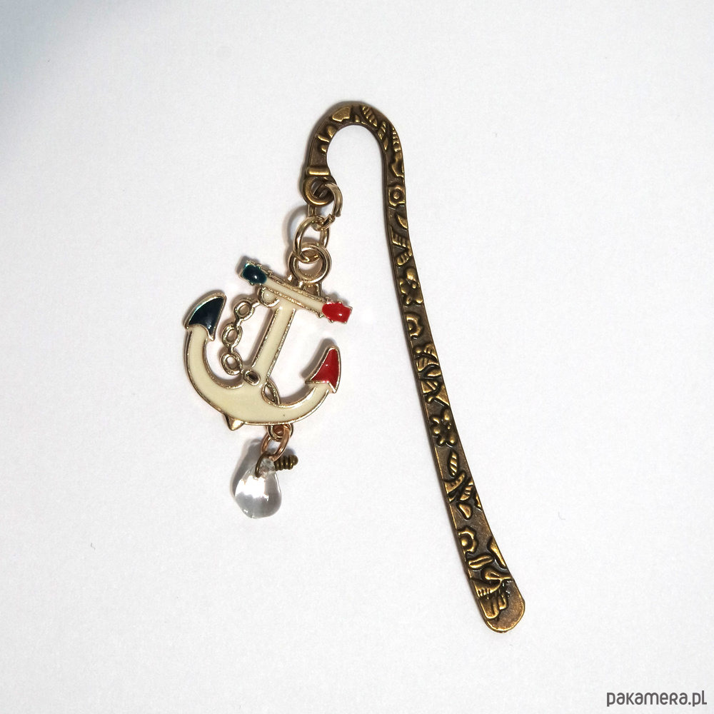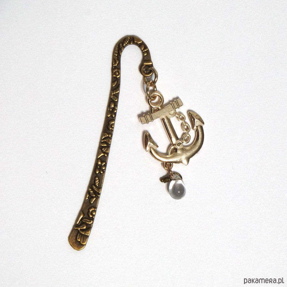 Niezwykła i praktyczna zakładka do książki z emaliowaną kotwicą oraz szklaną kroplą.