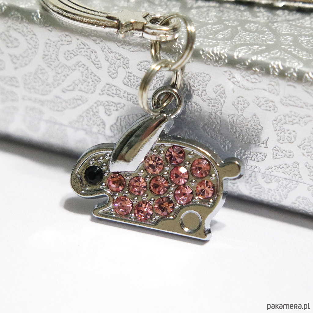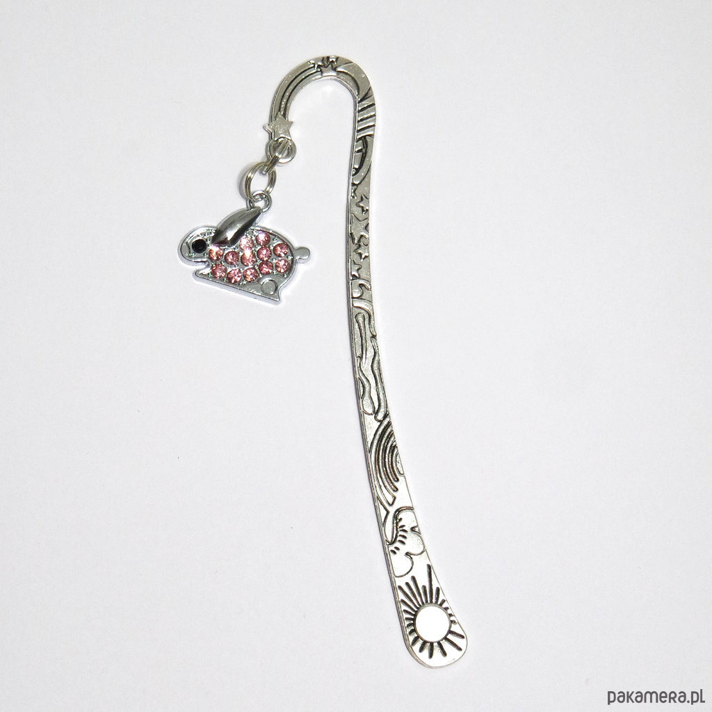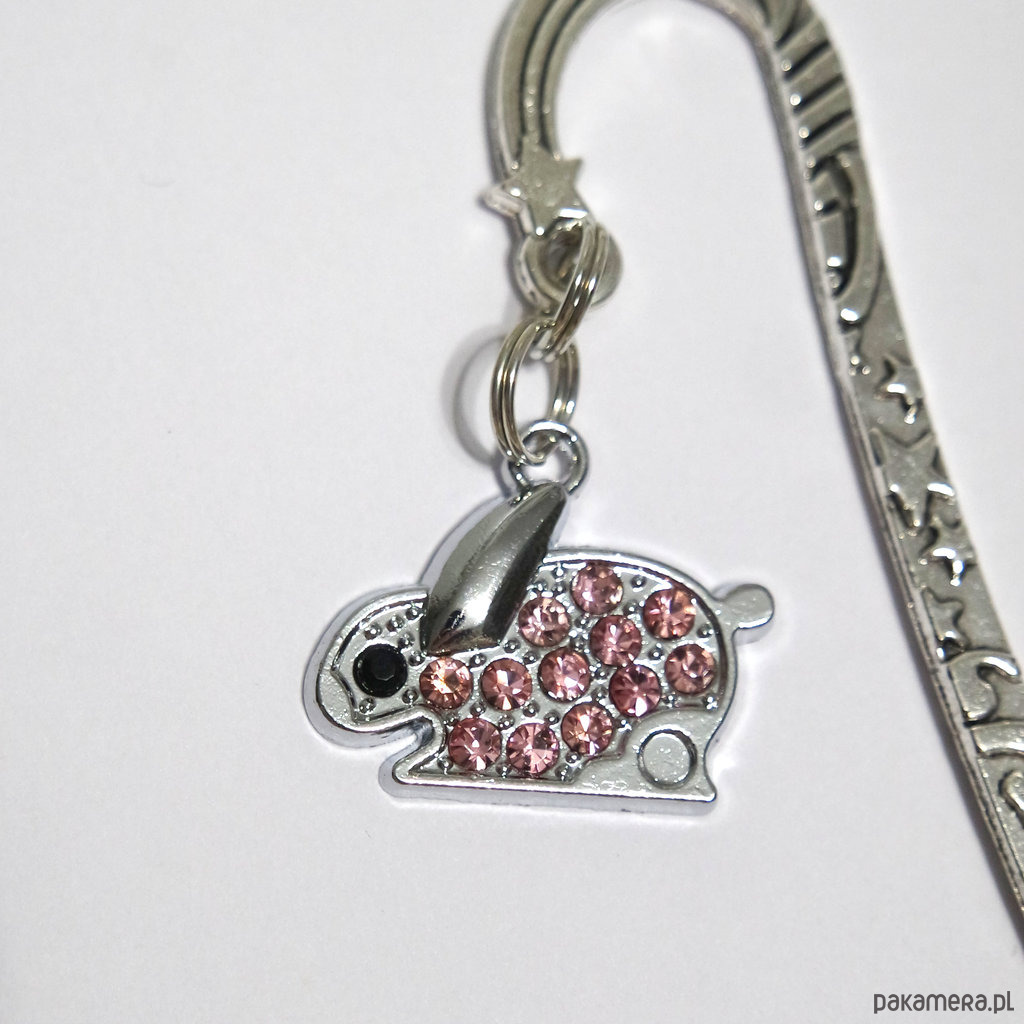 Niezwykła i praktyczna zakładka do książki z zawieszką w kształcie królika z błyszczącymi kryształkami.
