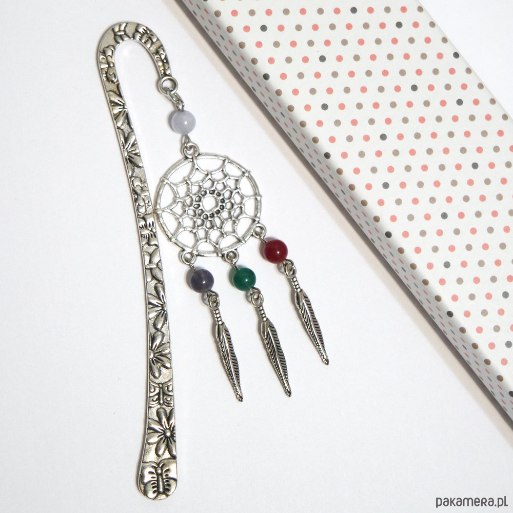 Niezwykła i praktyczna zakładka do książki z piękną zawieszką w kształcie łapacza snów oraz koralikami.