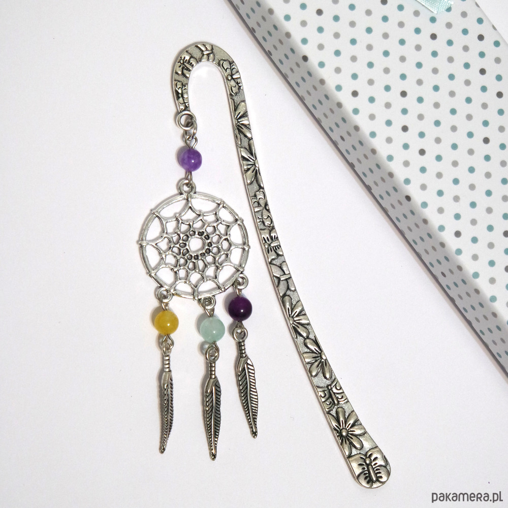 Niezwykła i praktyczna zakładka do książki z piękną zawieszką w kształcie łapacza snów oraz koralikami.