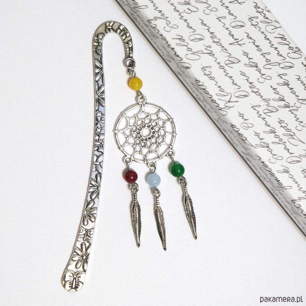 Niezwykła i praktyczna zakładka do książki z piękną zawieszką w kształcie łapacza snów oraz koralikami.