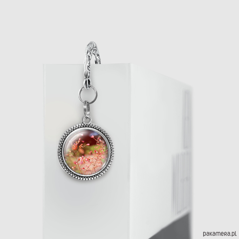 Grafika ukryta w pięknie zdobionej zakładce do książki pod osłoną przeźroczystego półokrągłego szkiełka.
