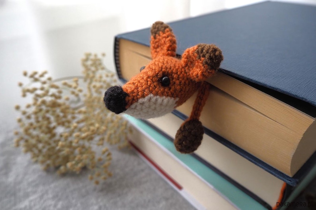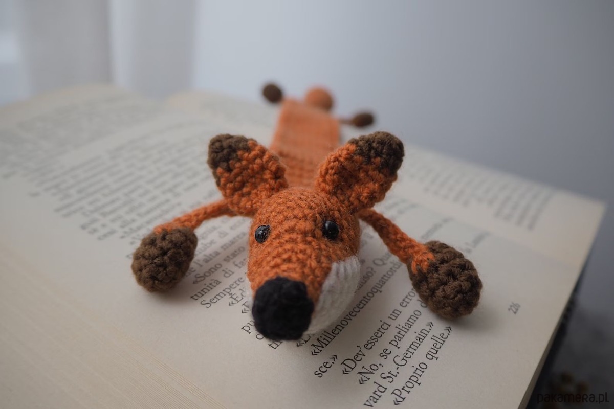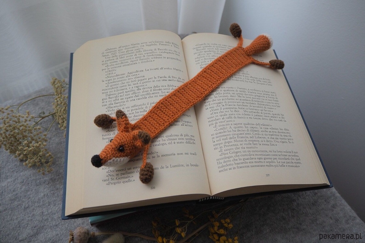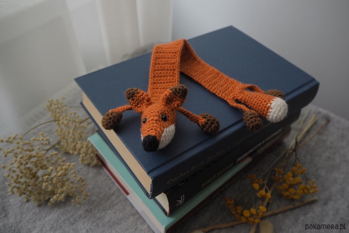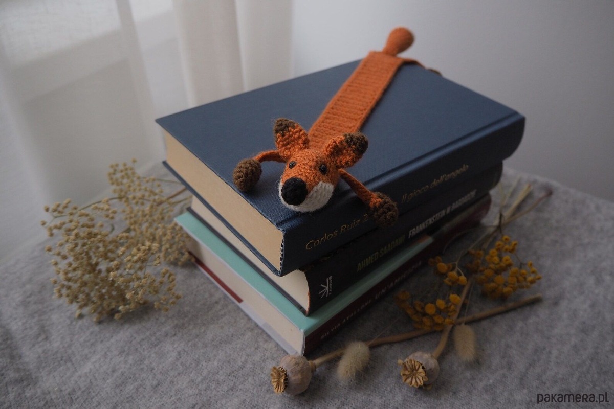 Zakładka do książki z sympatycznym liskiem wykonana z włóczki na szydełku.