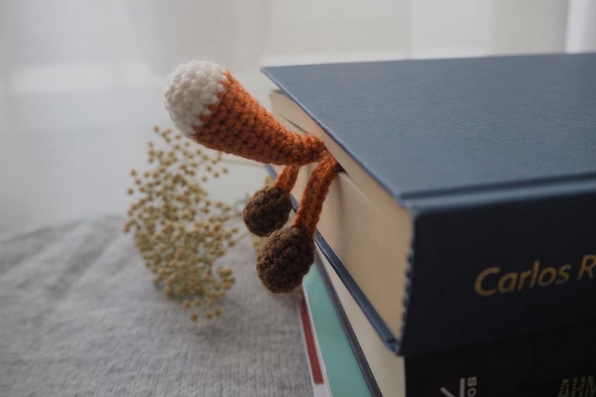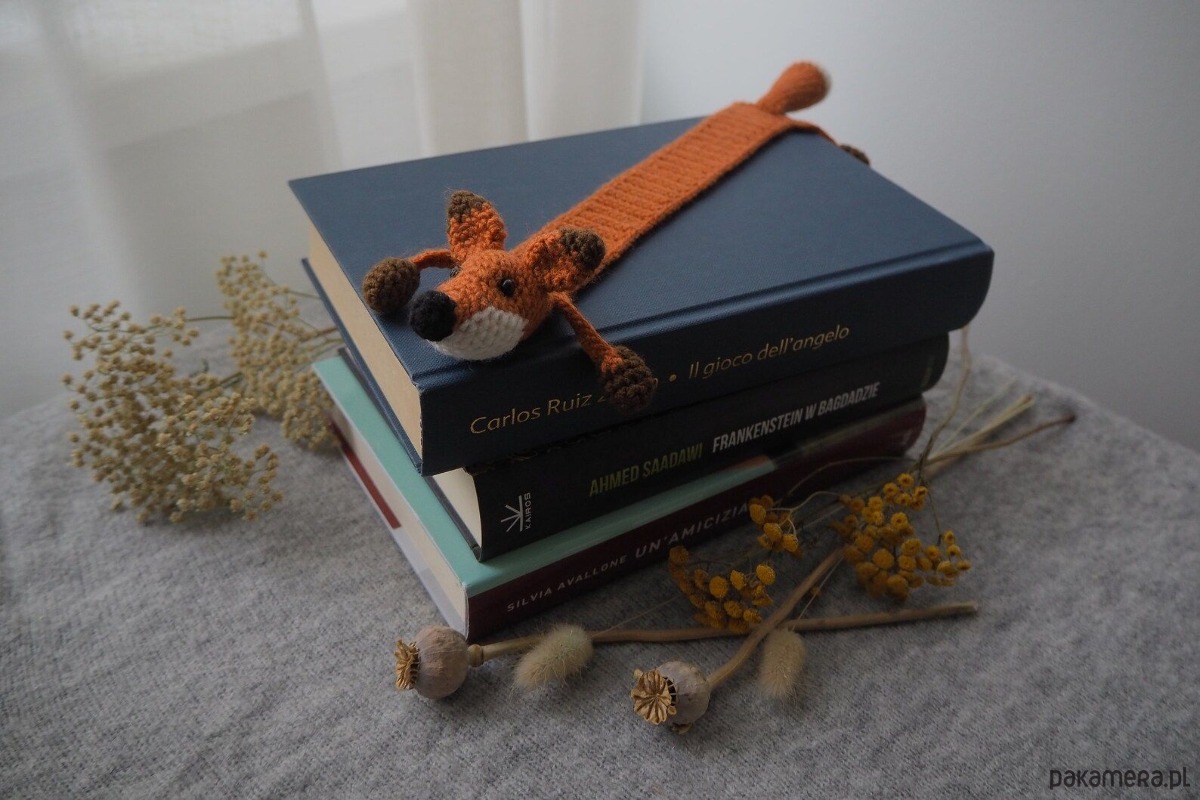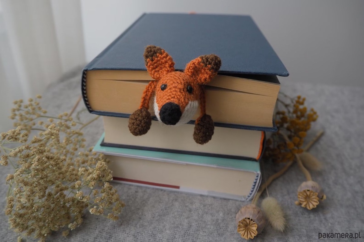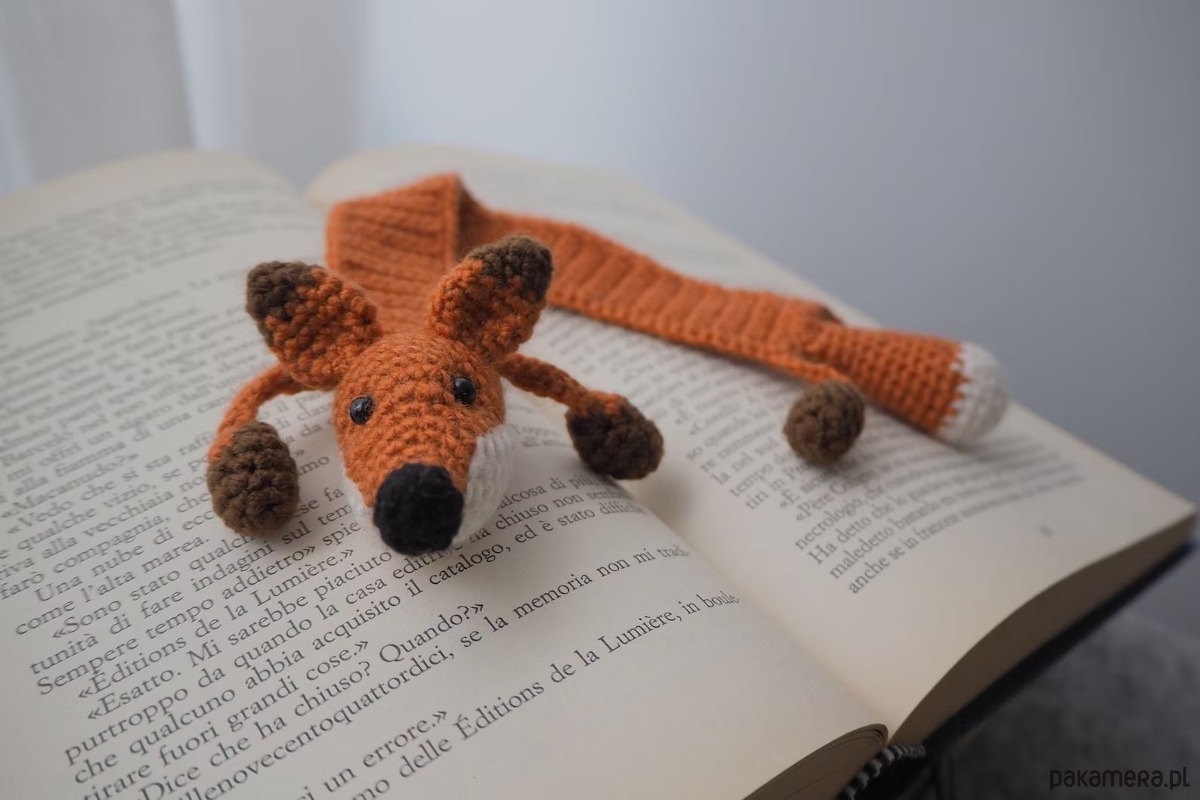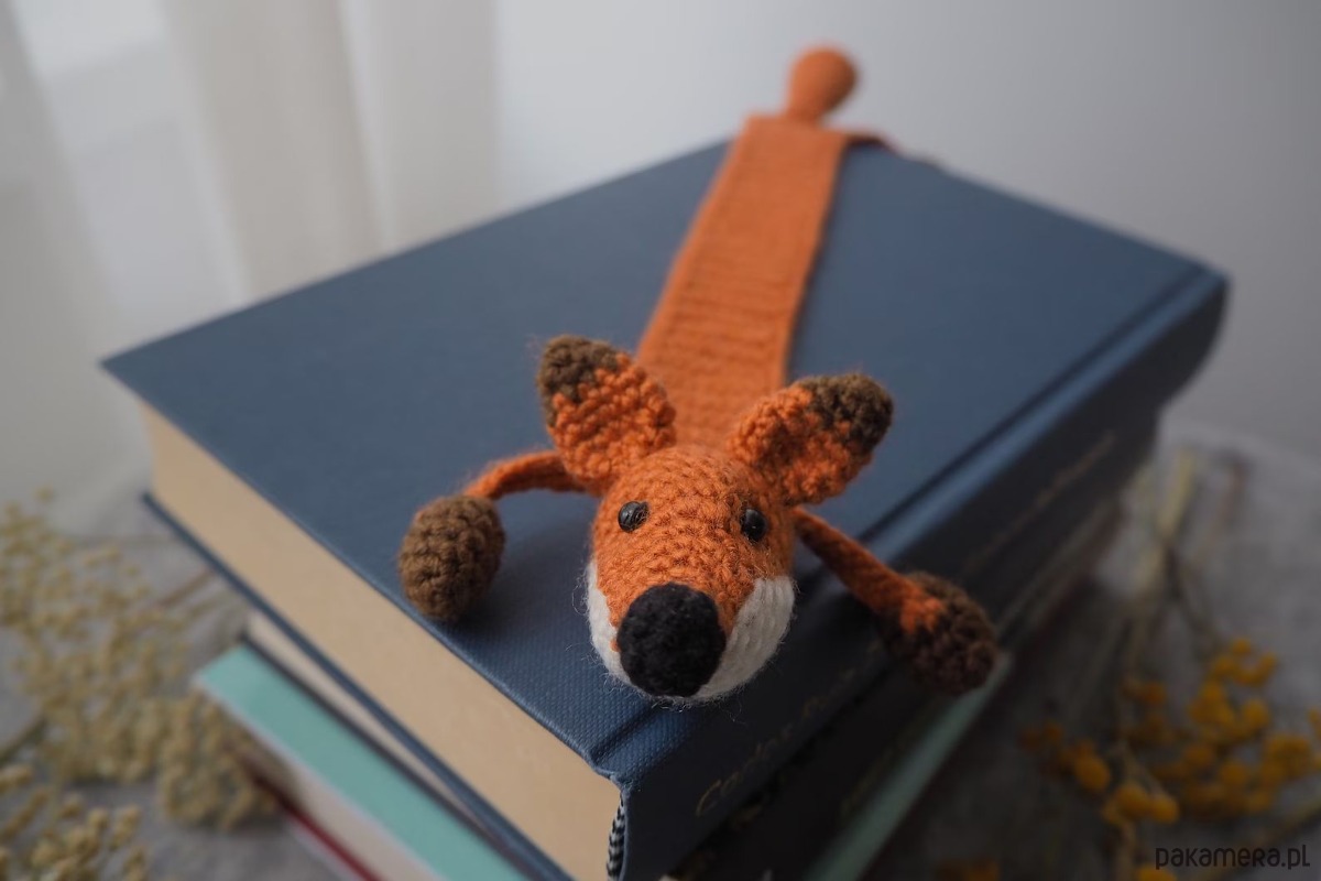 Zakładka do książki z sympatycznym liskiem wykonana z włóczki na szydełku.