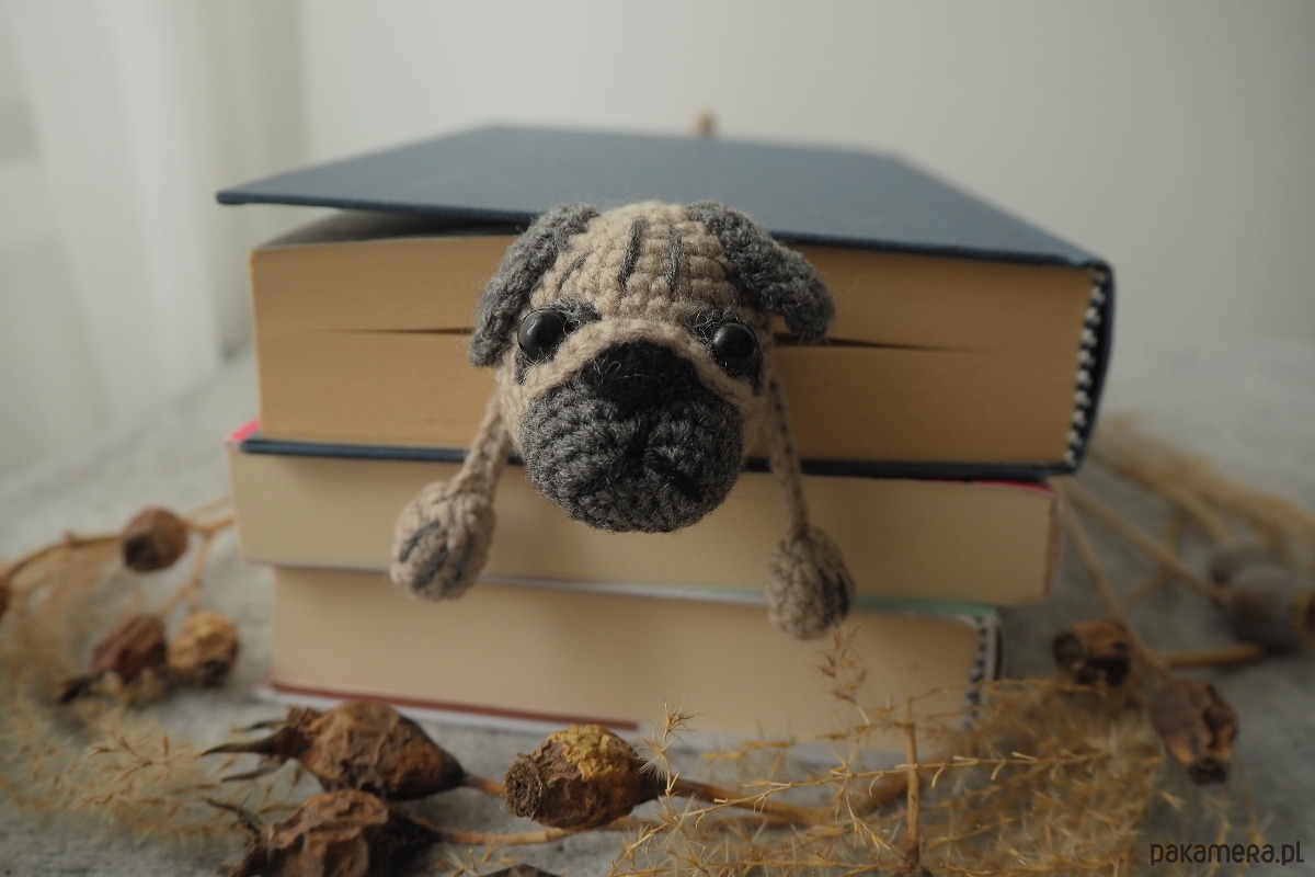 Zakładka do książki z sympatycznym pieskiem wykonana z włóczki na szydełku.