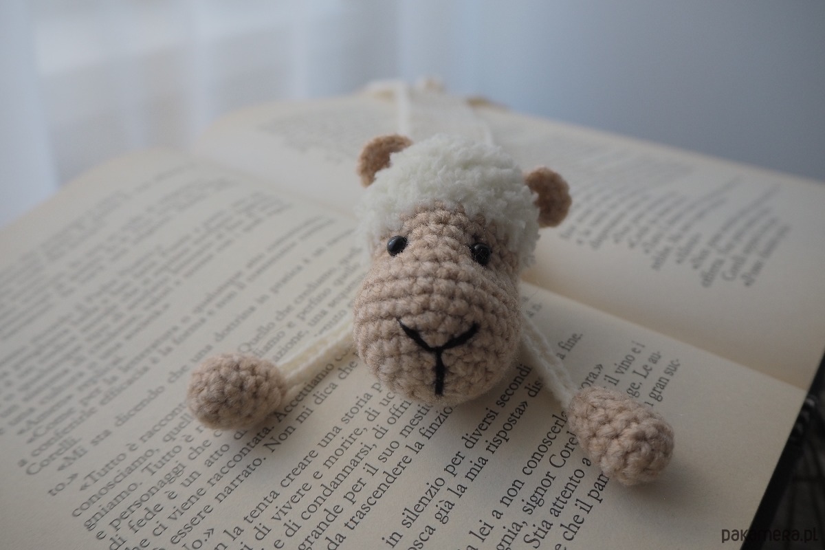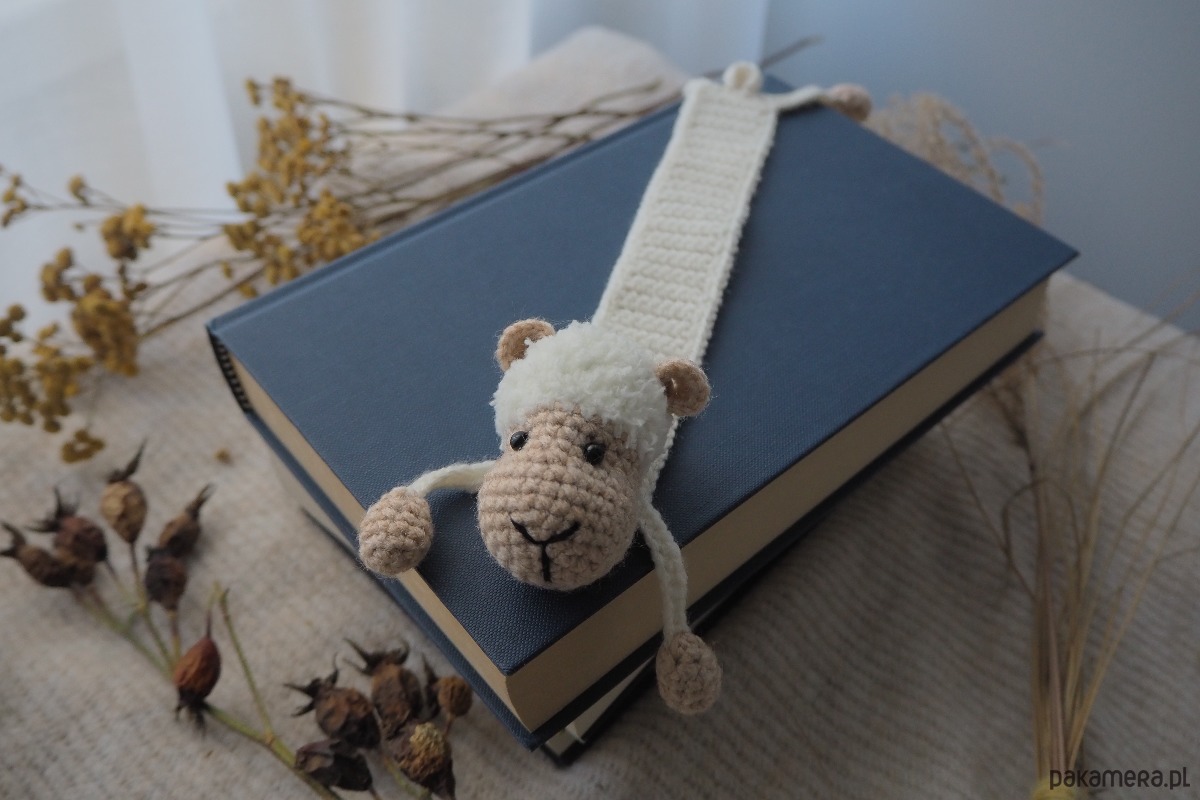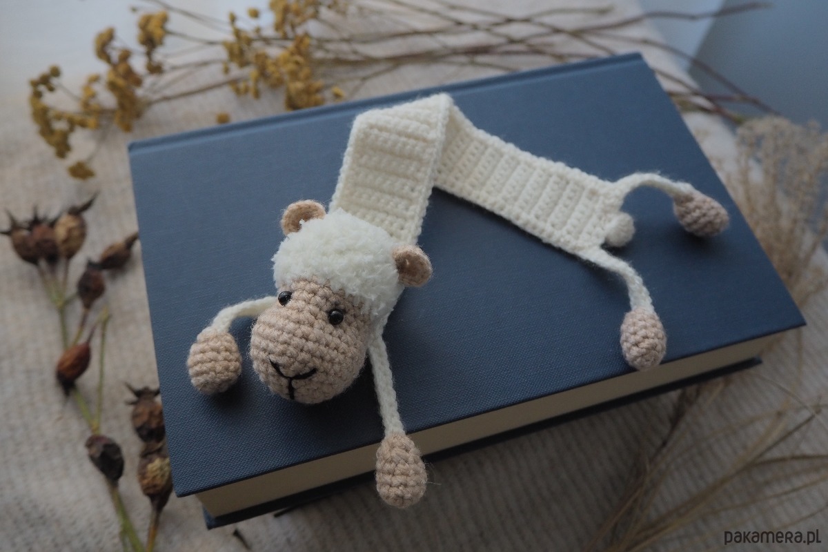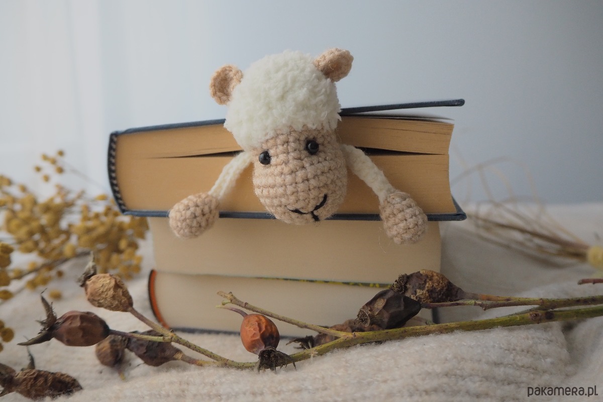 Zakładka do książki z sympatyczną owieczką wykonana z włóczki na szydełku.