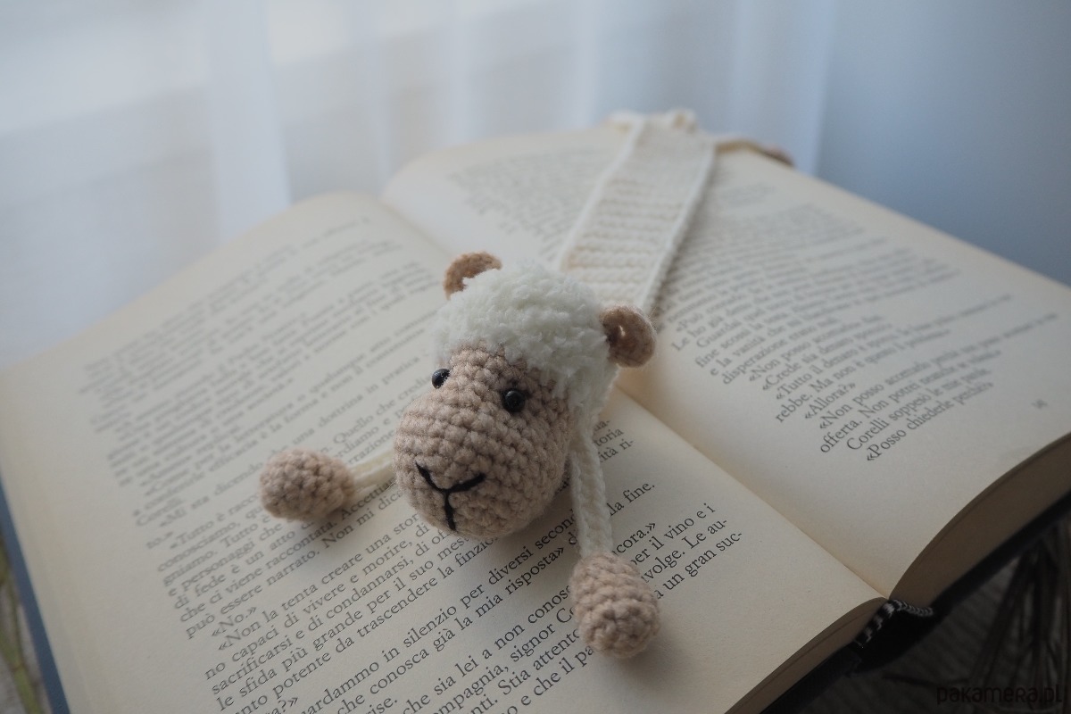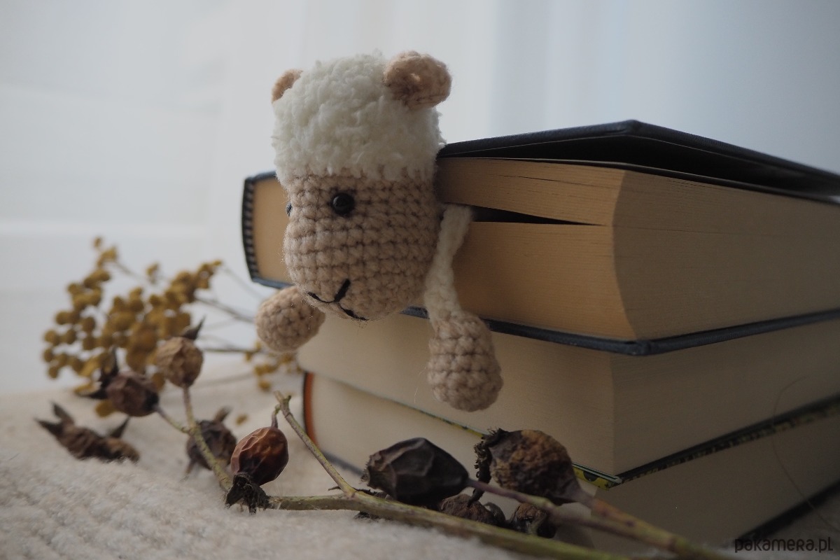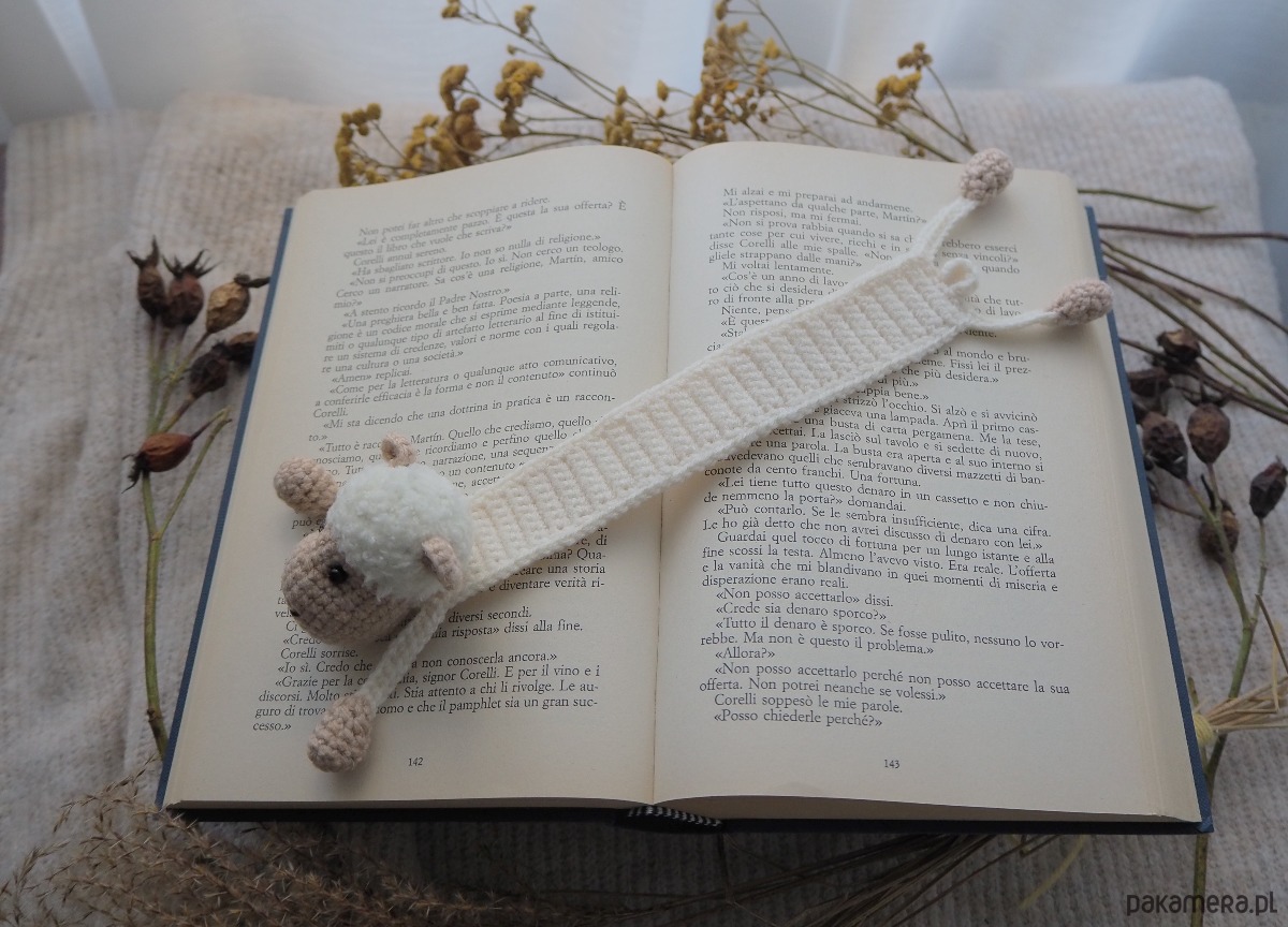 Zakładka do książki z sympatyczną owieczką wykonana z włóczki na szydełku.