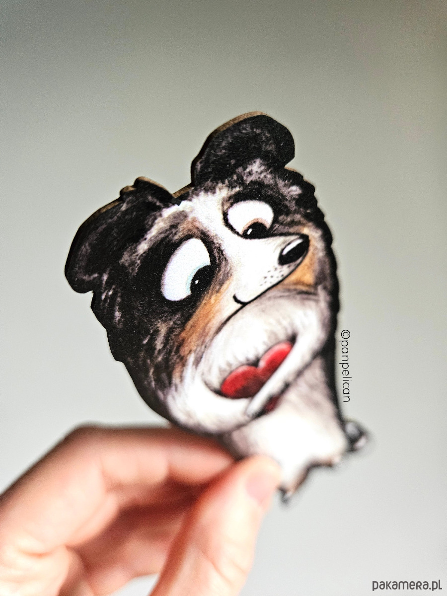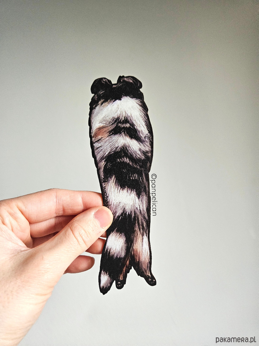 Autorska dwustronna zakładka do książki „Owczarek Szetlandzki Kiara”. Druk na ekotekturze premium, reprodukcja malowanego ręcznie wzoru.