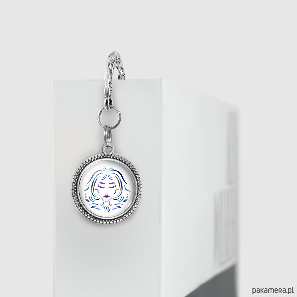 Grafika ukryta w pięknie zdobionej zakładce do książki pod osłoną przeźroczystego półokrągłego szkiełka.