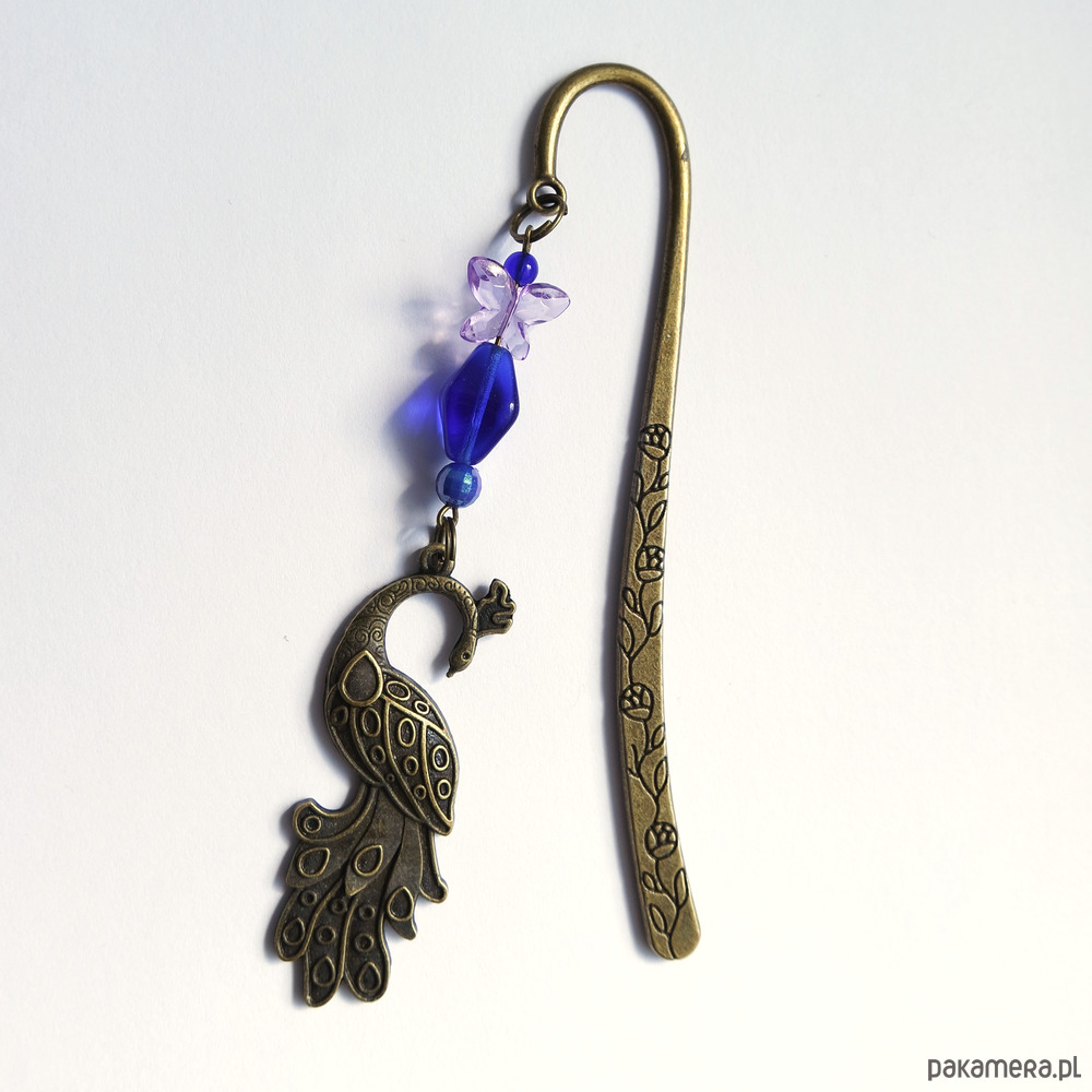 Niezwykła i praktyczna zakładka do książki z piękną zawieszką w kształcie pawia oraz kompozycją z koralików.