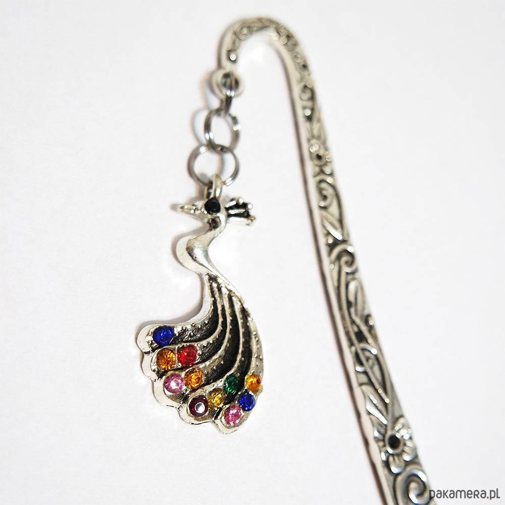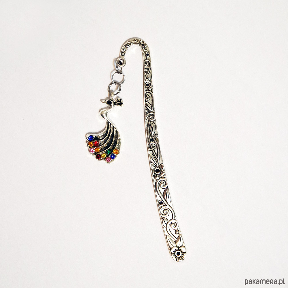 Długość zakładki ok. 12 cm. Rozmiary pawia ok. 3,5x2 cm.