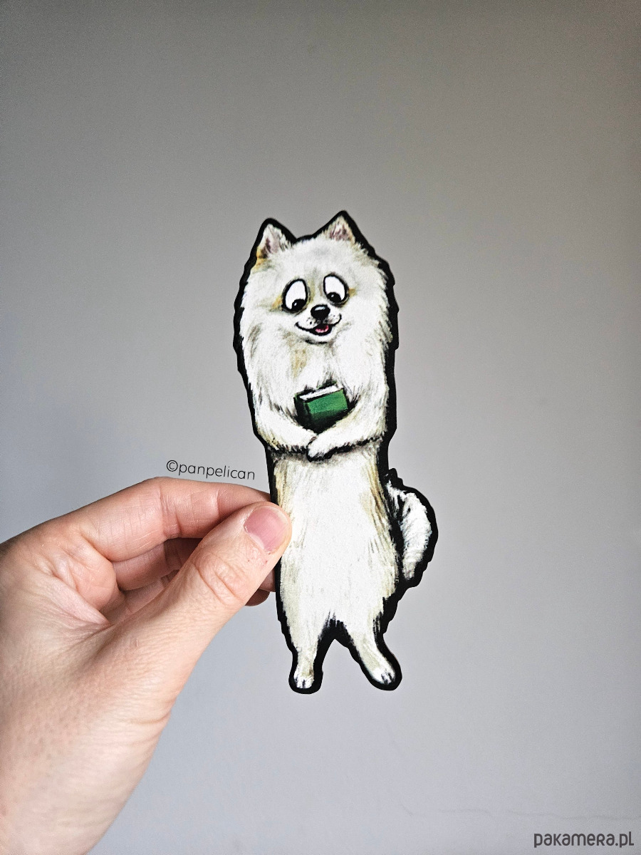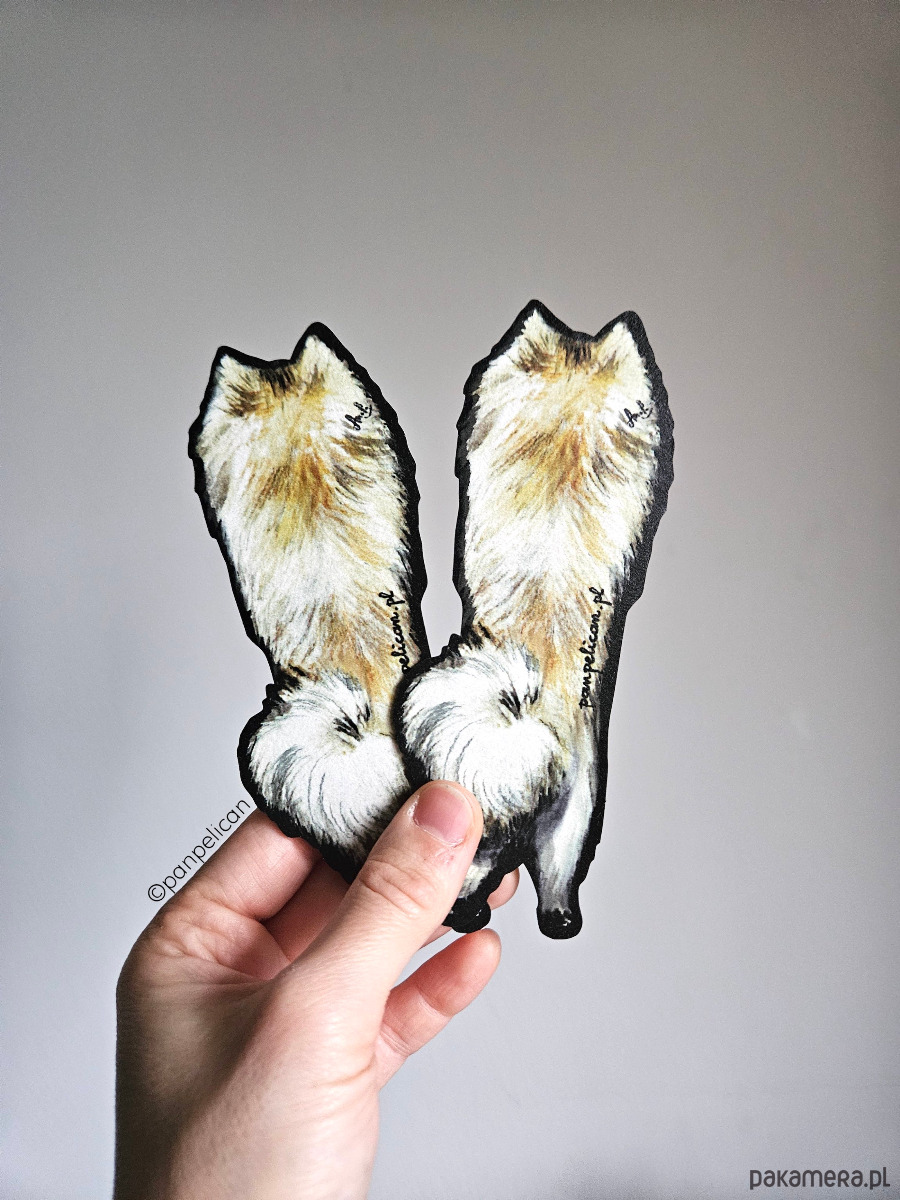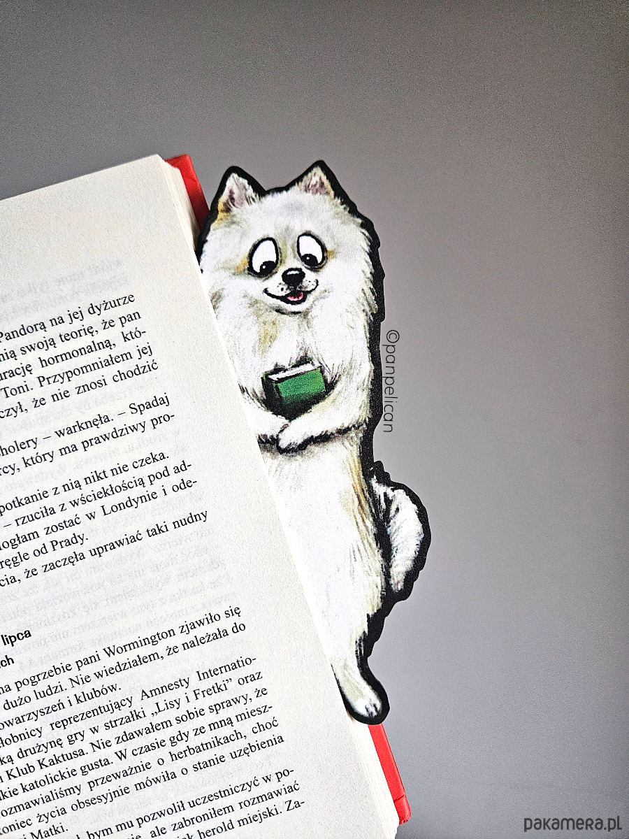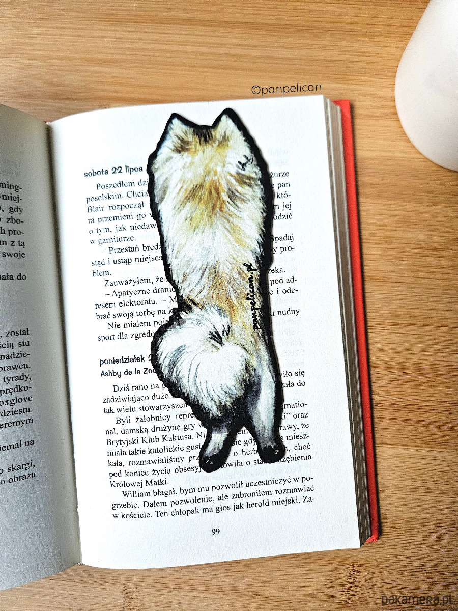 Autorska dwustronna zakładka do książki „Piesek Gustaw”. Druk na ekotekturze premium, reprodukcja malowanego ręcznie wzoru.