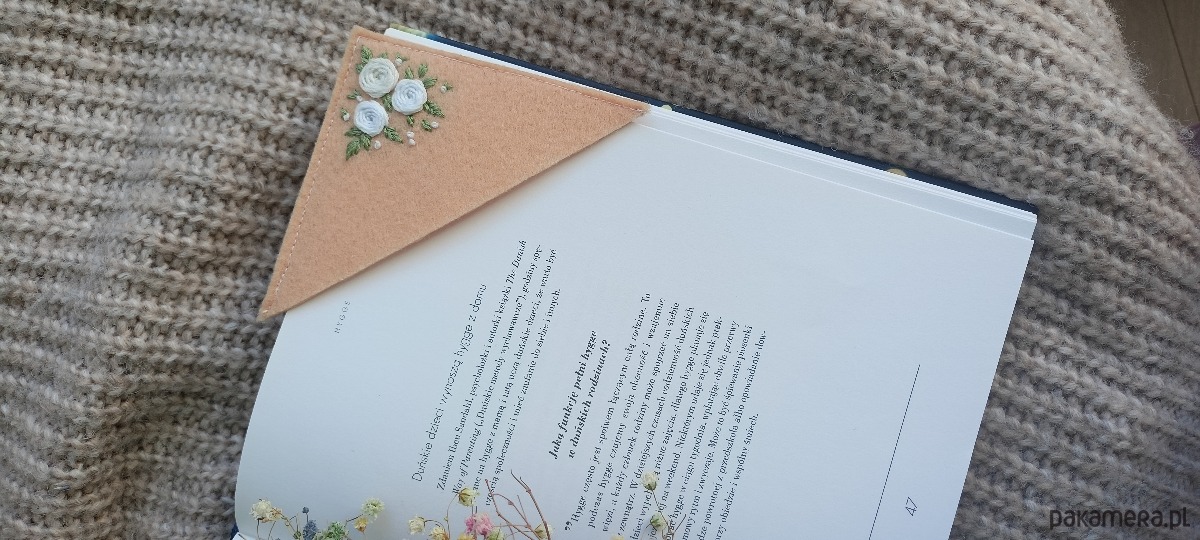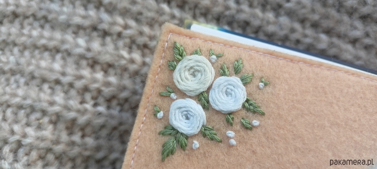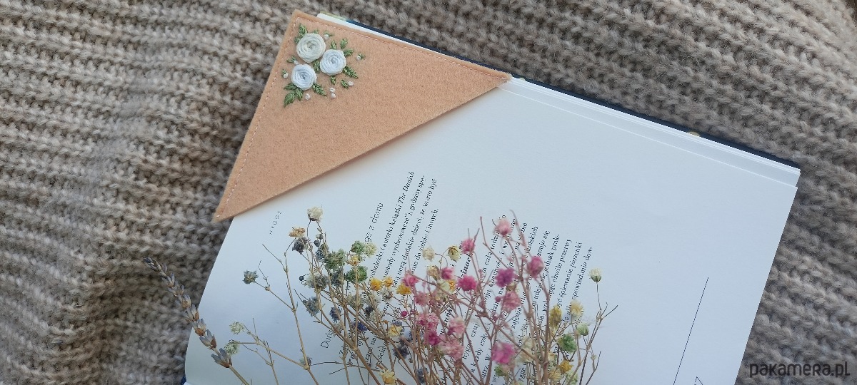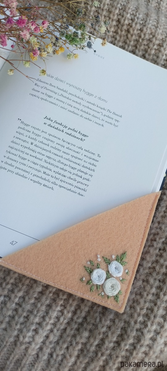 Filcowa zakładka do książki z ręcznie wyhaftowanymi różami.