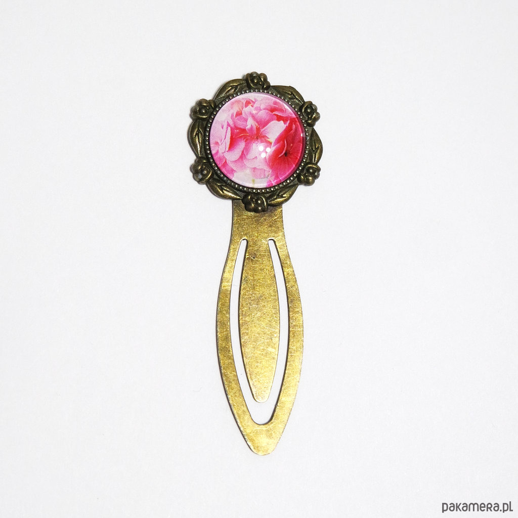 Zakładka do książki - Różowa pelargonia - klips, brąz