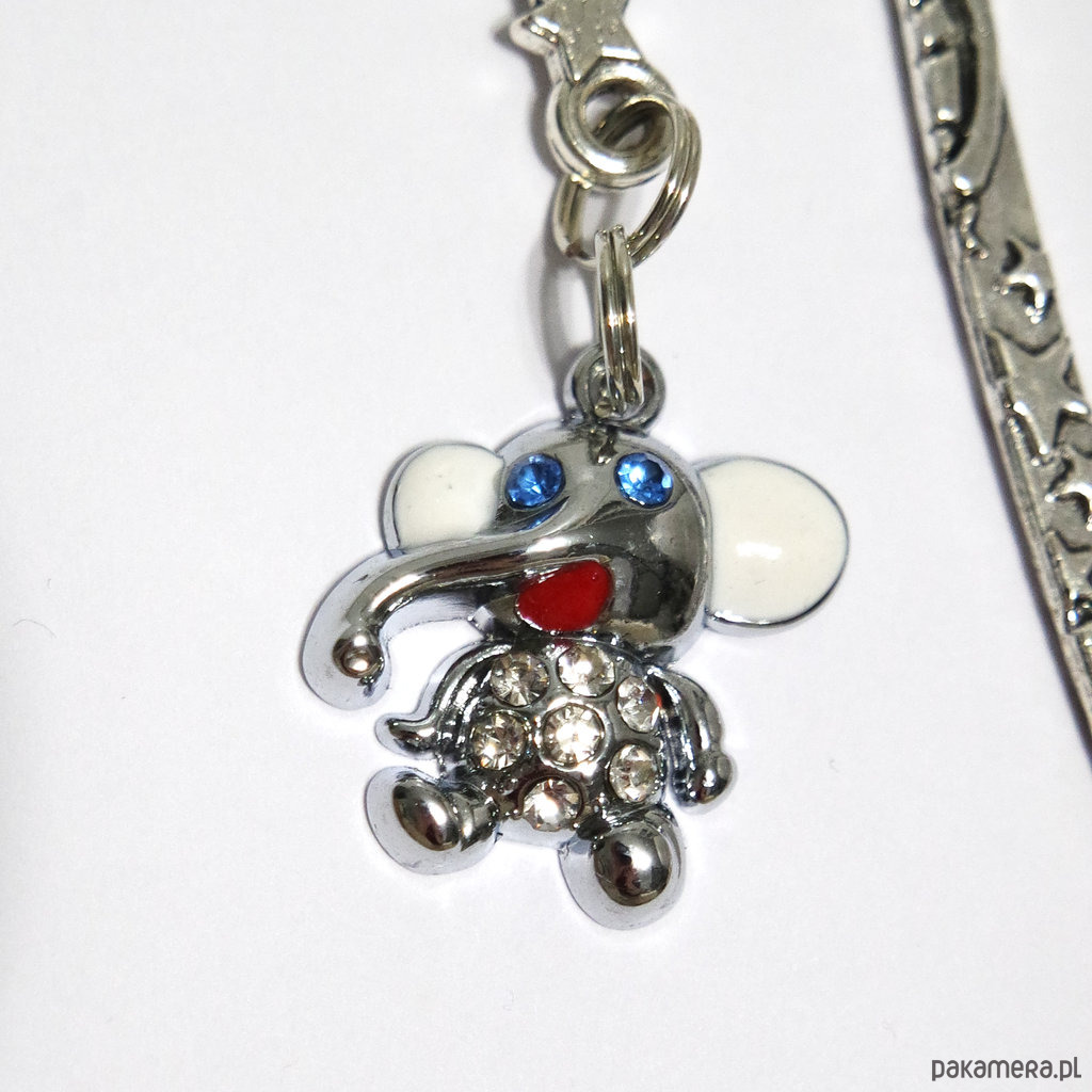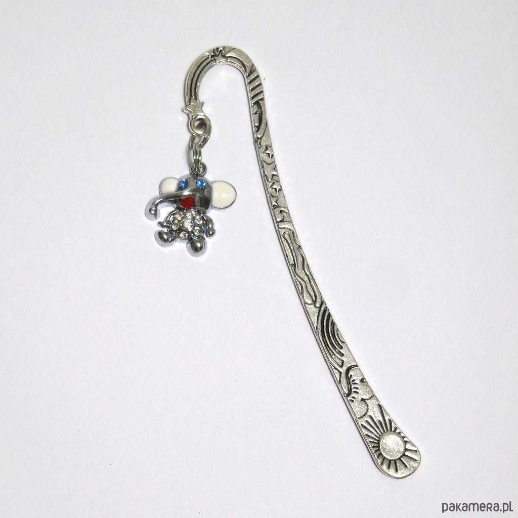Niezwykła i praktyczna zakładka do książki z zawieszką w kształcie słonika z błyszczącymi kryształkami.