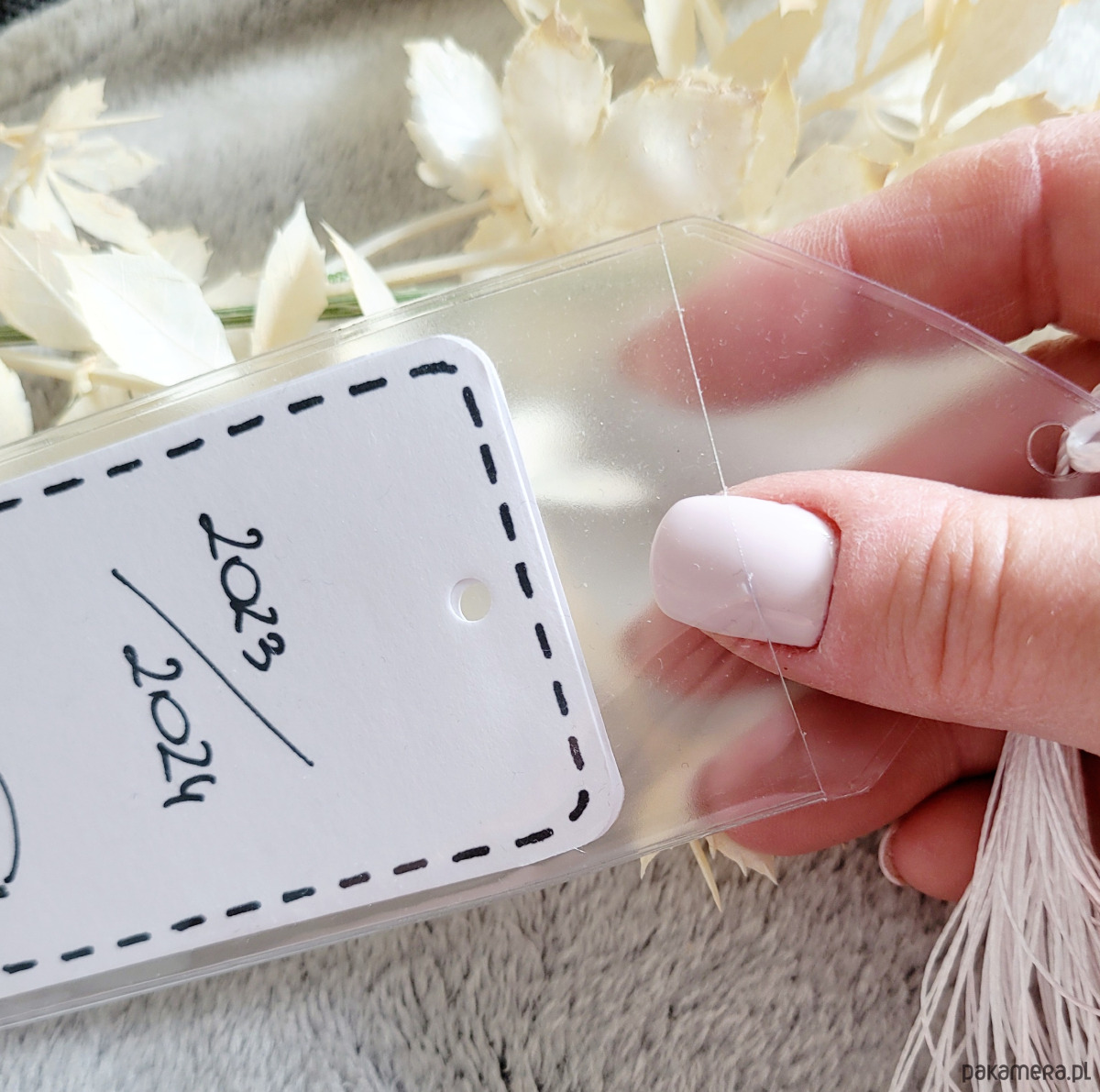 dodatkowo - przeźroczysta zakładka z możliwością umieszczenia życzeń, notatek, własnej grafiki lub ulubionego zdjęcia