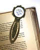 Grafika ukryta w pięknie zdobionej retro zakładce do książki pod osłoną przeźroczystego półokrągłego szkiełka.