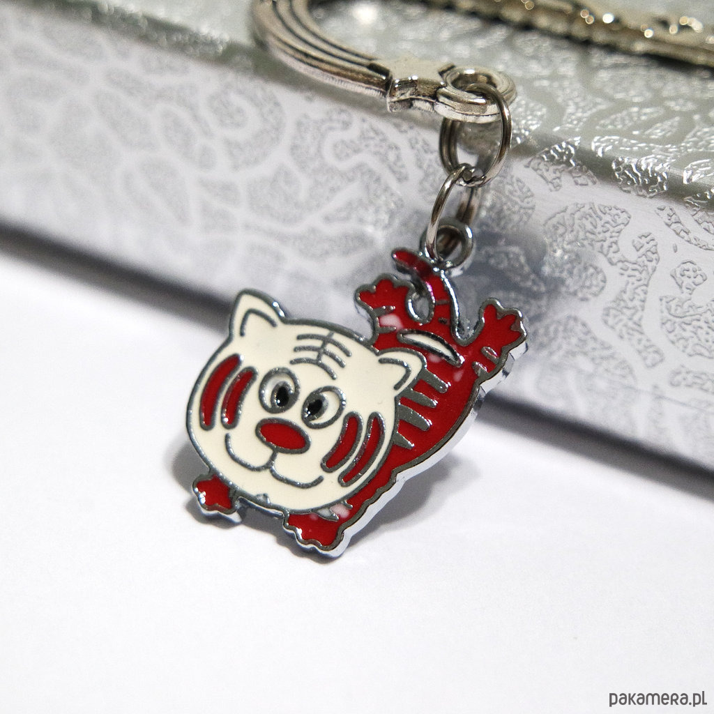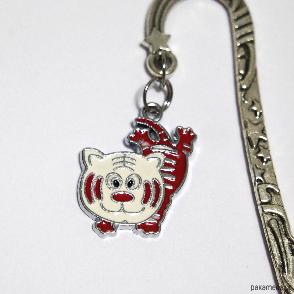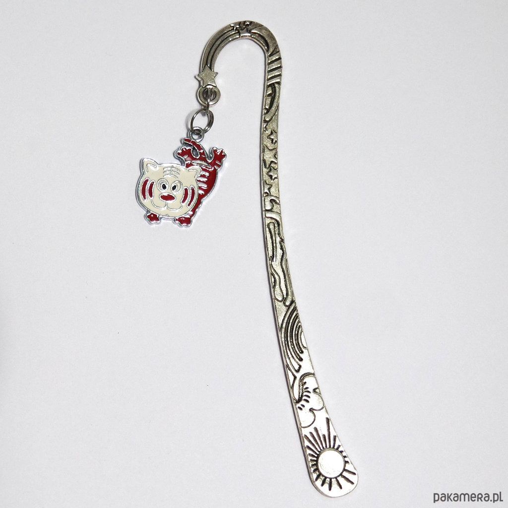 Niezwykła i praktyczna zakładka do książki z emaliowaną zawieszką w kształcie tygryska.