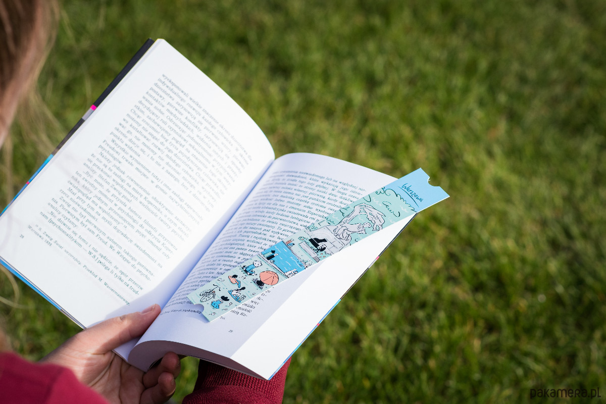 Wesoła historyjka znajduje się na obu stronach zakładki, a praktyczny kształt zadowoli gusta najbardziej wytrawnych czytelników.