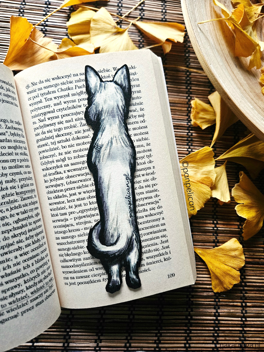 Autorska dwustronna zakładka do książki „West Shaguś”*. Druk na ekotekturze premium, reprodukcja malowanego ręcznie wzoru.