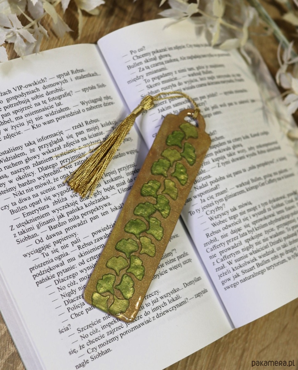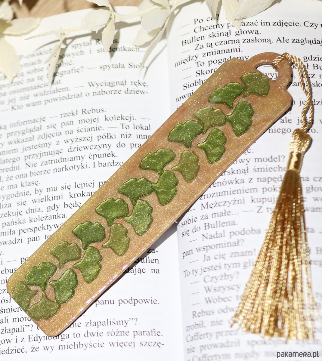 zakładka PREMIUM do książki o klasycznym kształcie i niezwykłym motywie liści miłorzębu