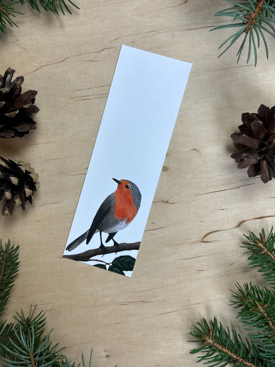 Zakładka z wydrukiem autorskiego malunku rudzika.