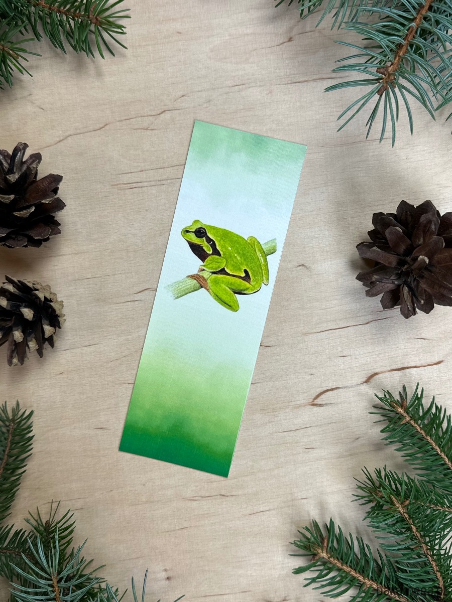 Zakładka z wydrukiem autorskiego rysunku rzekotki.