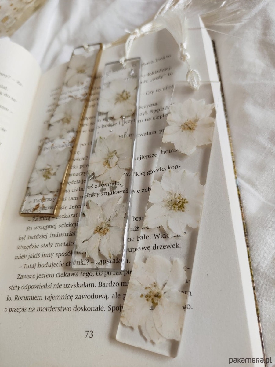 Ze wzgędu na to że każda zakładka jest robiona ręcznie a rośliny są niepowtarzalne - każda zakładka będzie delikanie się od siebie różnić