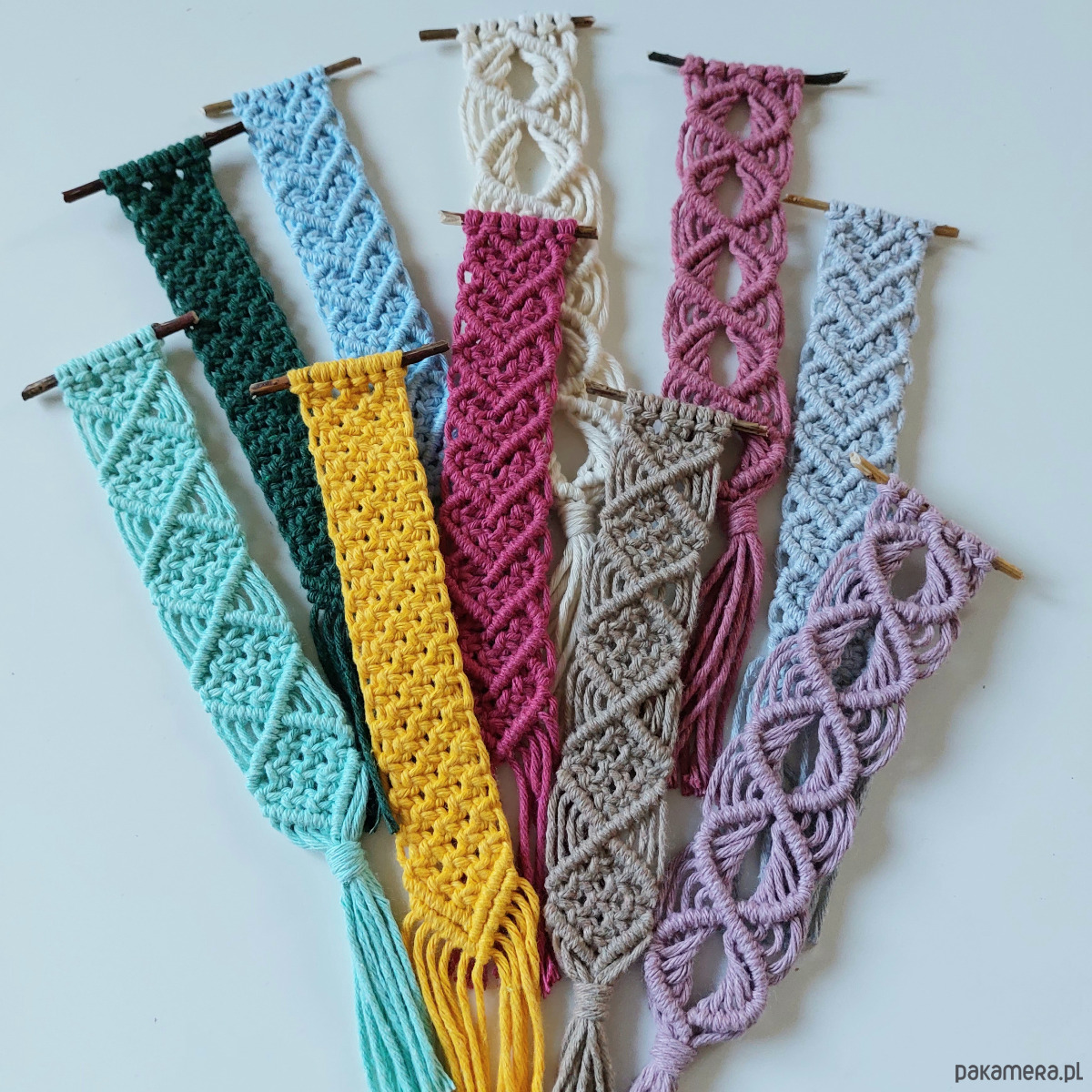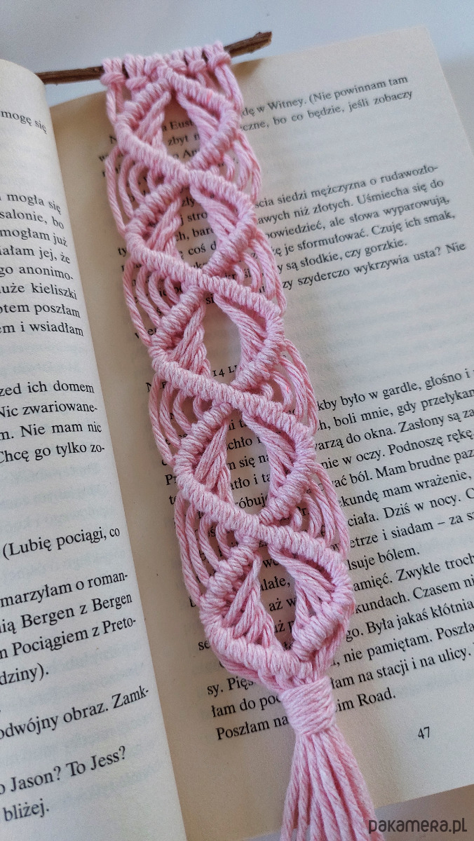 Ręcznie wykonana zakładka do książki handmade na naturalnej drewnianej gałązce to wyjątkowy dodatek dla miłośników czytania. Wykonana z bawełnianego sznurka skręcanego 2 mm, zachwyca starannym wykonaniem i lekkością. Długość zakładki wynosi ok. 25 cm, dzięki czemu wygodnie zaznacza stronę. Dostępne wzory to romby, plaster miodu, dziurki oraz serca. Do wyboru aż 24 kolory, widoczne na ostatnim zdjęciu. Zakładka świetnie sprawdzi się jako oryginalny prezent dla bliskiej osoby.
