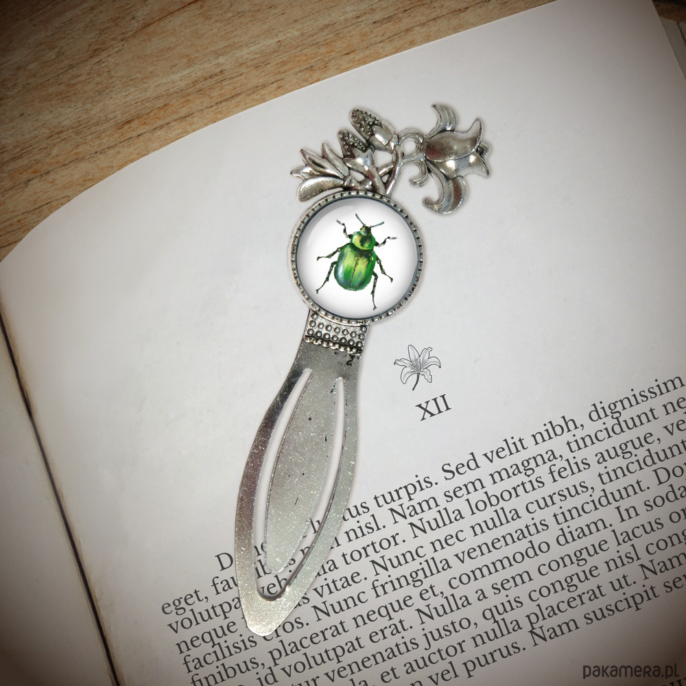 Zakładka do książki - Zielony żuczek - lilia