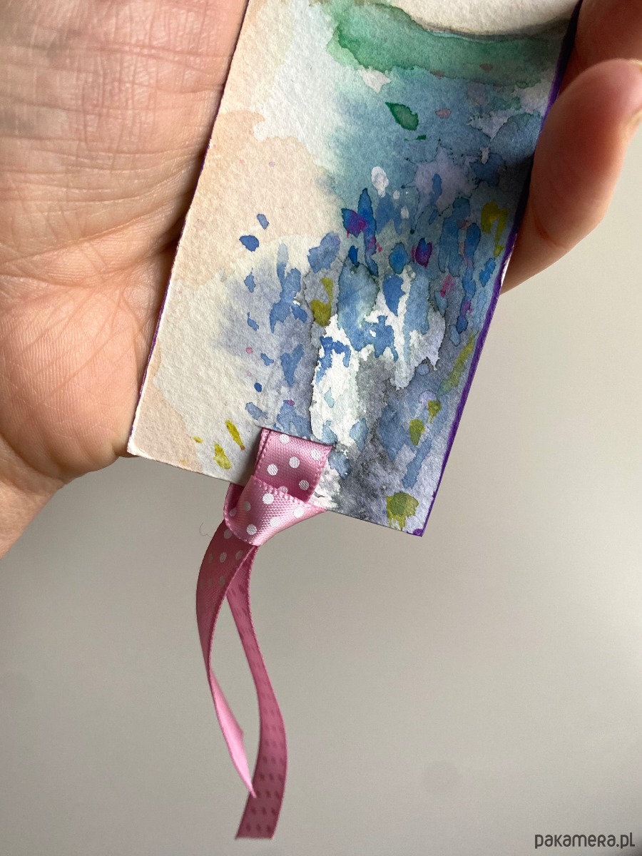 Materiał: papier akwarelowy, tusz, farby, wstążka