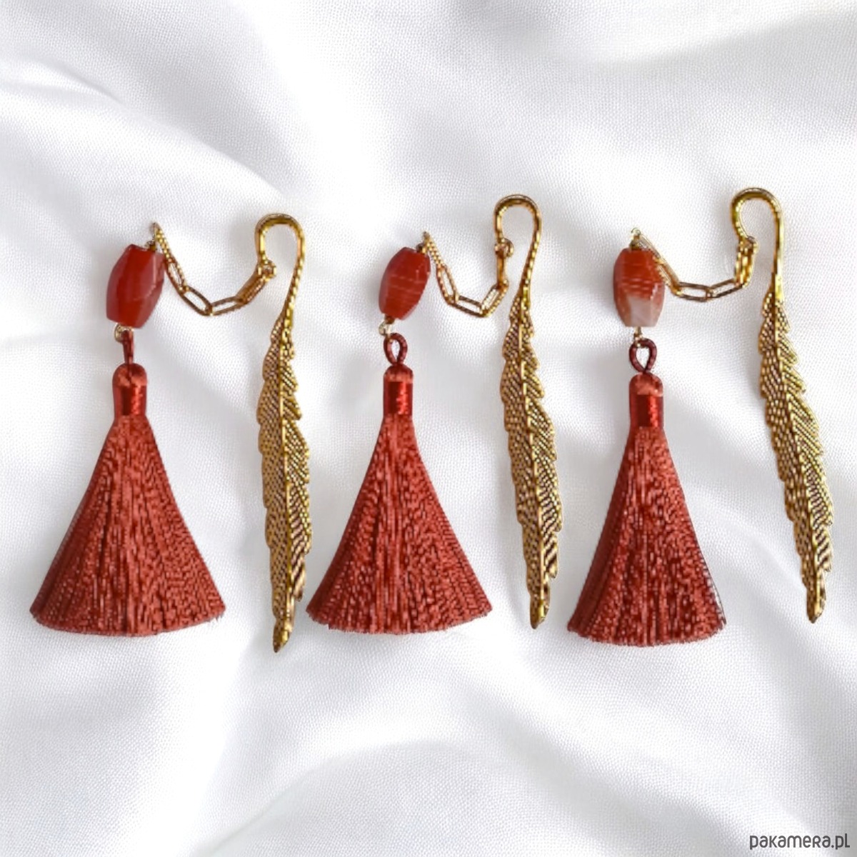 Fasetowana, nieregularna bryłka agatu ok.22mm, HEMATYT złoty, okazały chwost w kolorze rudym, metal w kolorze złota (baza), łańcuch: stal szlachetna, pozłacana. wszystkie poszczególne elementy są ruchome, więc zakładka będzie się ładnie układała. długość samej zakładki (bazy): ok.12cm. .. dł. elementu wiszącego: ok.16cm.