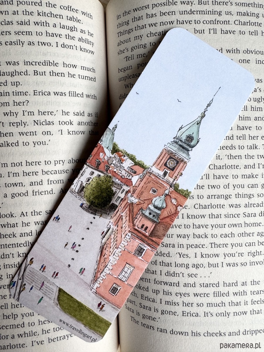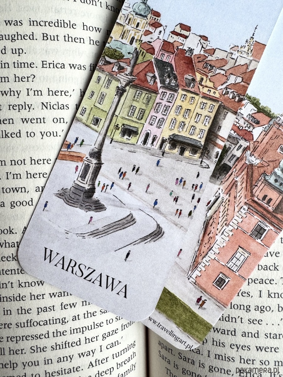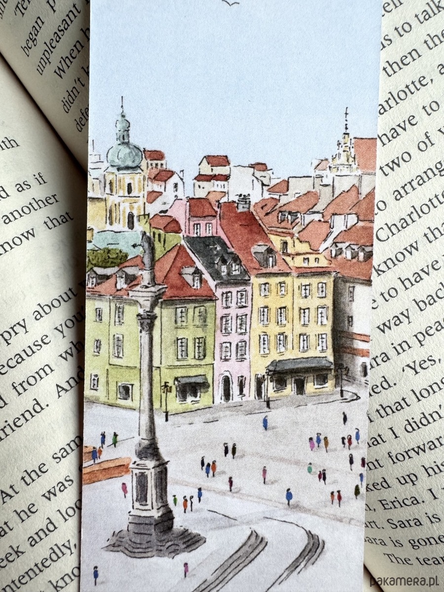 Zakładka z widokiem na Plac Zamkowy w Warszawie.